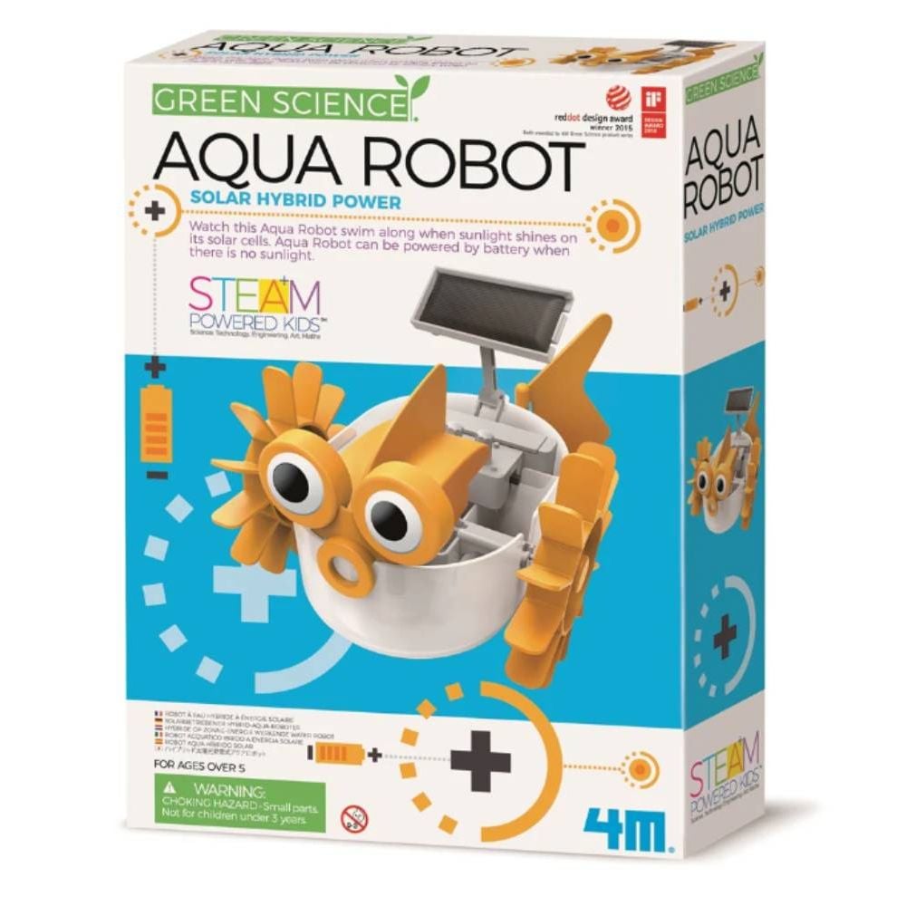 Kit constructie robot ecologic acvatic, Stiinta Verde - Green Science este un kit educativ care combina stiinta cu distractia. Copiii pot construi un robot acvatic care inoata pe suprafata apei, alimentat de energie solara sau de o baterie, oferind o introducere practica in conceptele de energie regenerabila si robotica.Beneficii:- Invatare practica - Introduce copiii in principiile energiei solare si ale tehnologiei hibride.- Dezvoltarea abilitatilor - Imbunatateste coordonarea mana-ochi si abilitatile de rezolvare a problemelor.- Stimulare creativa - Incurajeaza creativitatea si curiozitatea prin asamblarea si personalizarea robotului.Caracteristici:- Alimentare duala - Functioneaza cu energie solara sau cu o baterie AAA (neinclusa), asigurand distractie continua indiferent de conditiile de lumina;- Miscare realista - Robotul inoata si se deplaseaza pe apa, imitand miscarile unui peste adevarat;- Continut complet - Include toate componentele necesare pentru asamblare: corpul robotului, panou solar, motor, elice si instructiuni detaliate
