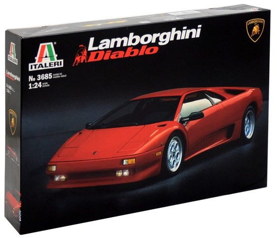 Kit de construit - Lamborghini Diablo Dimensiune model construit: 18.6 cm lungimeScara 1:24Dimensiune cutie produs: 34.5 x 24.2 x 6 cmDiablo a fost produs intre 1990 si 2001. In aceasta perioada, Lamborghini a introdus mai multe variante ale conceptului Diablo, prima fiind Diablo VT (Visco Traction), care dispunea de tractiune integrala. Diablo era destinat sa devina vrednicul mostenitor al renumitelor Miura si Countach. Aceasta noua supermasina era lata, joasa si futurista. Si, la fel ca predecesorii sai, Diablo a devenit curand un favorit printre pasionatii de masini din intreaga lume. Modelele Diablo au contribuit la construirea legendei Lamborghini si s-au vandut bine. Aproape 3.000 de unitati din toate seriile si variantele si-au gasit cumparatorii in acesti unsprezece ani de evolutie. Sefii Lamborghini isi dorisera o viteza maxima de cel putin 320 km/h, iar inginerii au facut ca aceasta dorinta sa devina realitate: Cu o viteza maxima de 325 km/h si o acceleratie de la 0 la 100 in 4,5 secunde, Diablo a ocupat pole position-ul in segmentul masinilor super sport. Isi oferea puterea prin intermediul unei tractiuni spate si venea cu un motor V12 nou dezvoltat. Patru supape pe cilindru, o injectie multipunct de combustibil controlata de computer si o cilindree de 5,7 litri au contribuit la producerea unui maxim de 492 CP.