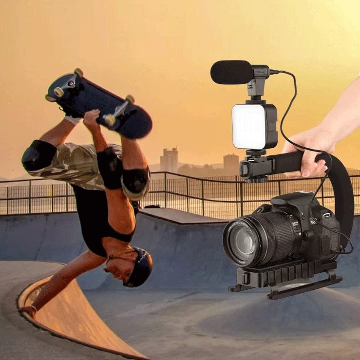 Trepied cu microfon si lumina pentru video Kit video Vlogging / Streaming, trepied cu microfon si lumini Kit complet pentru vlogging,trepied,microfon, panou LED, telecomanda si suport reglabil pentru telefon. Kit vlogger Youtube, TikTok: Un kit de vlogging pentru iPhone sau orice smartphone usor de asamblat cu lumina LED, microfon, suport pentru telefon, telecomanda si trepied. Acest microfon accepta toate smartphone-urile care vin cu mufa de intrare audio de 3,5 mm. Iphone 7 si versiunile superioare trebuie sa utilizeze adaptor original de 3,5 mm-fulger. Adaptorul nu este inclus. Un trepied multifunctional care dispune de o telecomanda wireless incorporata detasabila si un suport pentru telefon inteligent/camera de actiune, impreuna cu un suport care ajuta la montarea tuturor elementelor incluse in acest kit, astfel incat sa va puteti conecta telefonul sau camera, aceasta este solutia dumneavoastra completa de video vlogging. Microfon profesional: Constructia durabila din aluminiu si designul fara baterie include un suport solid pentru a minimiza zgomotul de manipulare. Trepied portabil si de calitate: Picioarele flexibile ale trepiedului sunt realizate din ABS mai gros si conector complet din metal. Perfect pentru calatorii, selfie-uri, inregistrare video Youtube sau Tiktok. Lumina LED stralucitoare: reglabila. Functioneaza cu 2 baterii AA LR6 1.5V (nu sunt incluse in pachet). Suport pentru telefon cu rotatie de 360 ​​de grade: tine in siguranta telefoane mobile si dispozitive cu latime intre 6 cm pana la 7 cm, in modul portret (vertical) sau peisaj (orizontal) Compact si portabil. Telecomanda Bluetooth, poate fi folosita si separat pentru declansarea fotografierii sau a filmarii pe telefonul dvs ! In sectiunea Bluetooth din setarile telefonului dvs apare ca AB Shutter3. Imperechere simpla si rapida. Buton Pornit-Oprit pe lateralul telecomenzii. Functioneaza cu o baterie Li de tip CR2032 (inclusa). Specificatii: Material: plastic Culoare: negru microfon - lungime 13,5 cm trepied – lungime 16 cm prindere telefon – interval 5,4 - 8,3 cm