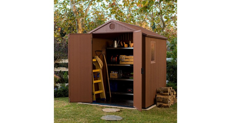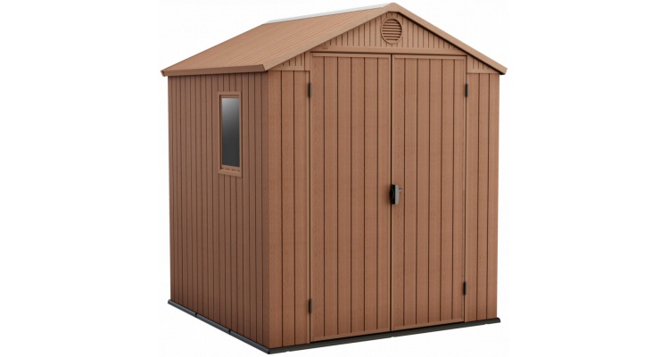 Magazie de gradina PREMIUM realizata din material EVOTECH.Imita perfect lemnul, dar fara problemele acestuia in timp (cari, mucegai, crapaturi etc).Montaj rapid, in aproximativ 2 ore. Include instructiuni clare de montaj (poze cu indrumari).Usa poate fi incuiata (lacatul nu este inclus-nu este antifurt). Include podea (cu rezistenta de pana la 150 kg/m2), fereastra fixa si aerisire deasupra usii.Este izolata, apa nu patrunde in interior. Rezistenta la toate elementele naturii: UV, vant, ploaie, zapada (exceptie facand situatiile iesite din comun).Isi pastreaza aspectul de casuta noua chiar si dupa mai multe sezoane afara.Acoperis rezistent: poate sustine pana la 75 kg zapada/m2. Dimensiuni exterioare (masurate sus, inclusiv streasina): Latime 190 cmadancime 182 cmInlatime 221 cm Dimensiuni interioare: Latime: 178 cmAdancime 168 cmInaltime 199.8 cm