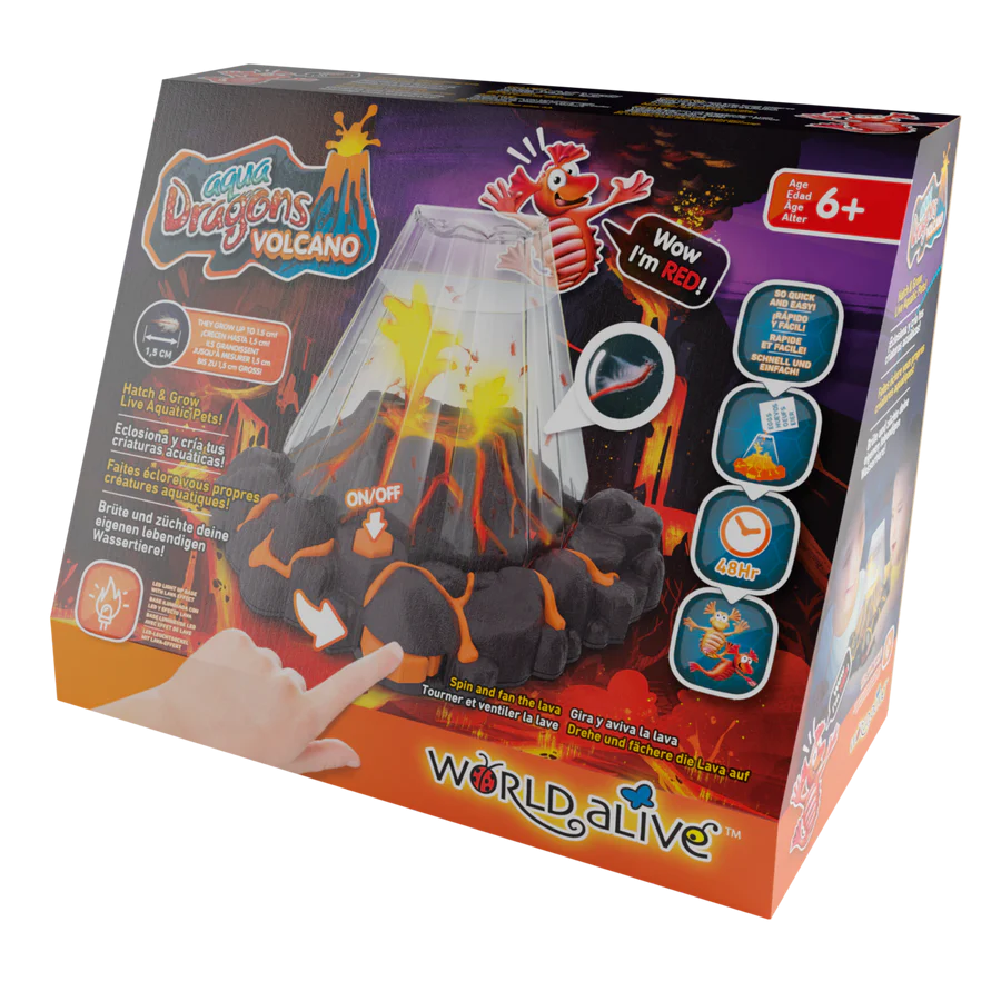 Set educativ STEM - AQUA DRAGONS Habitat VULCAN cu lava - acvariu cu LED si Aqua Dragons rosii