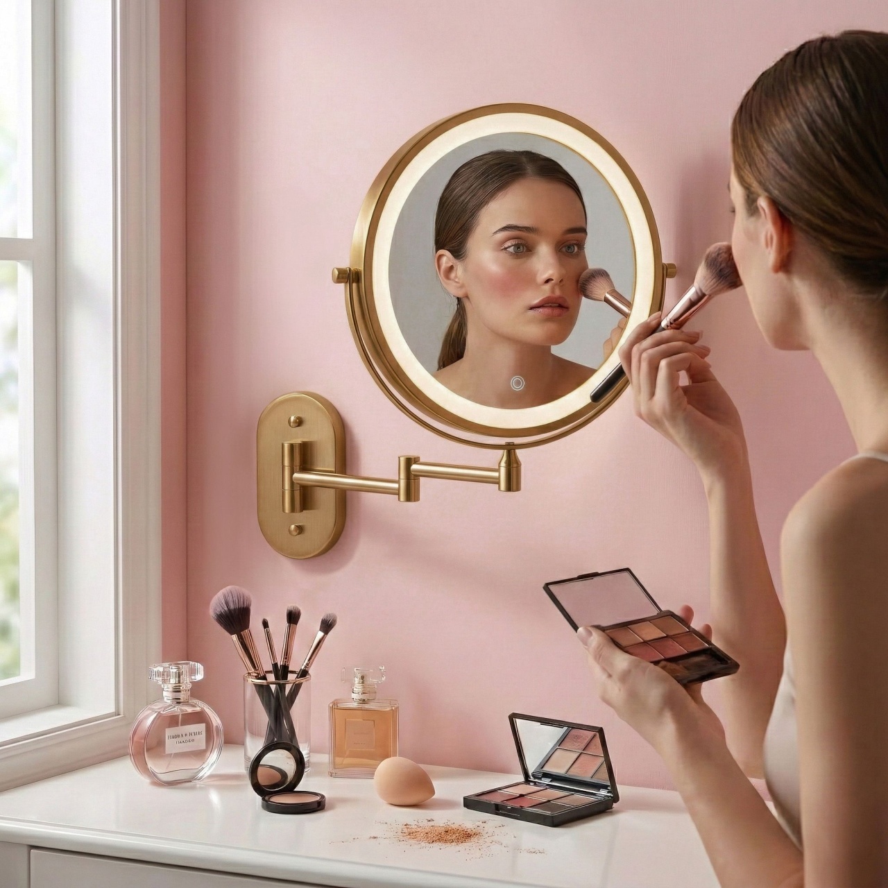 Oglindă cosmetică LED de perete – o soluție practică și elegantă, ideală pentru baie, dressing sau masa de toaletă. Acest model dublu față, cu braț rabatabil, este un ajutor indispensabil pentru machiaj, bărbierit și îngrijire de precizie, combinând designul modern cu funcționalitatea ridicată.Suprafață dublă (mărire 3x) – o parte oferă oglindă standard, cealaltă mărire 3x. Discul rotativ la 360° permite schimbarea rapidă a feței.Iluminare LED reglabilă – rama luminoasă integrată oferă trei temperaturi de culoare: caldă, neutră și rece. Butonul tactil permite reglarea fină a intensității.Încărcare USB comodă – bateria integrată se încarcă prin cablul USB Type-C inclus. Iluminarea funcționează fără fir, fără cabluri atârnate permanent.Braț articulat – construcția solidă permite apropierea, depărtarea și plierea oglinzii la perete. Articulațiile asigură libertate totală în setarea unghiului ideal.Construcție din oțel – oțelul durabil garantează stabilitate în utilizare, iar finisajul estetic conferă un aspect modern și elegant.Dimensiune optimă – diametrul de 20 cm reprezintă echilibrul perfect între confort și economie de spațiu.Oglinda de machiaj cu braț ridică real standardul îngrijirii zilnice. Construcția bine gândită, iluminarea excelentă a feței și funcționarea fără fir o fac o alegere comodă și versatilă pentru interior. Inalime: 300 Latime : 430 Adâncime: 30 Iluminare LED: Iluminare LED Ramă: Ramă Culoarea ramei: Auriu periat Materialul ramei: Metal Formă: Rotund Model: Glow Putere: 12 Garantie: 24 luni
