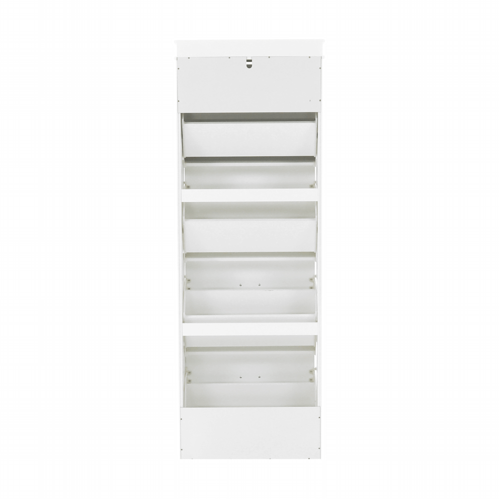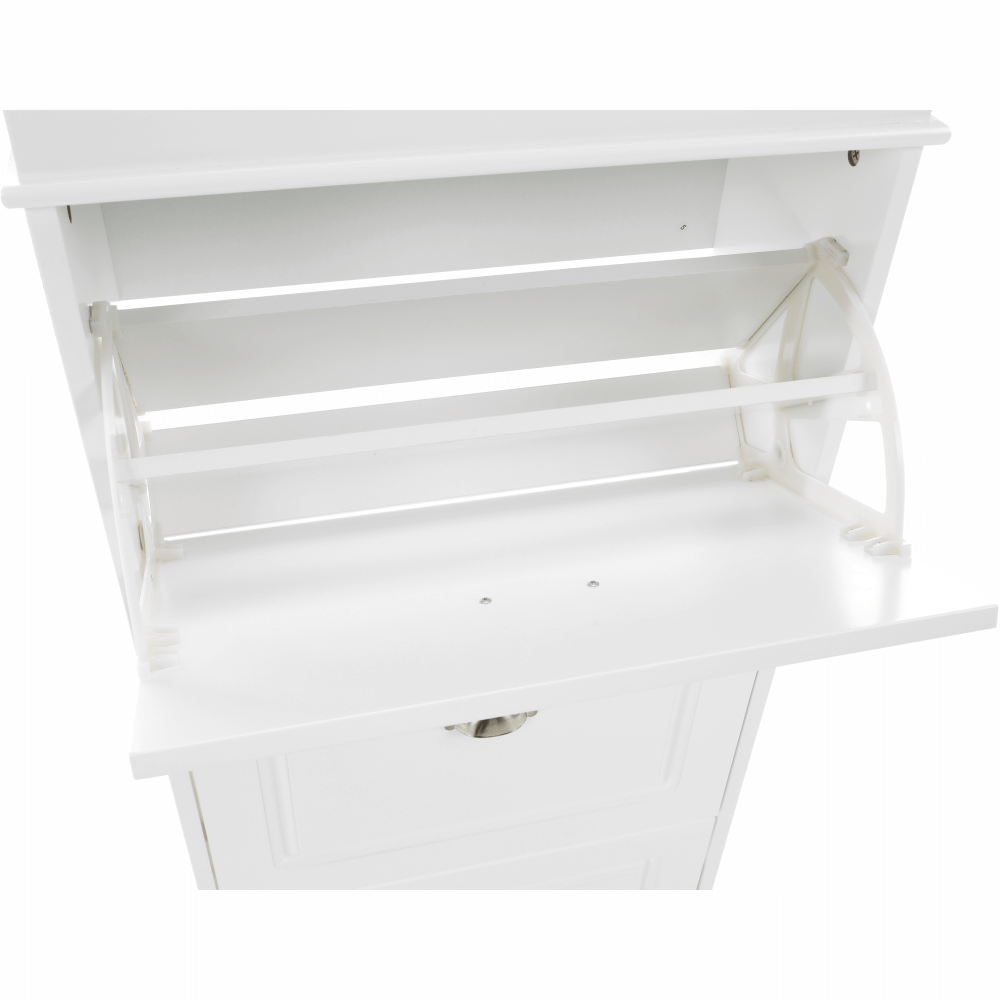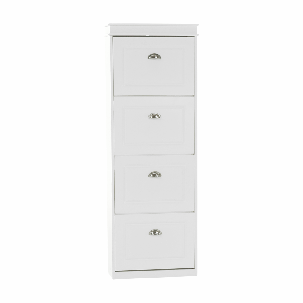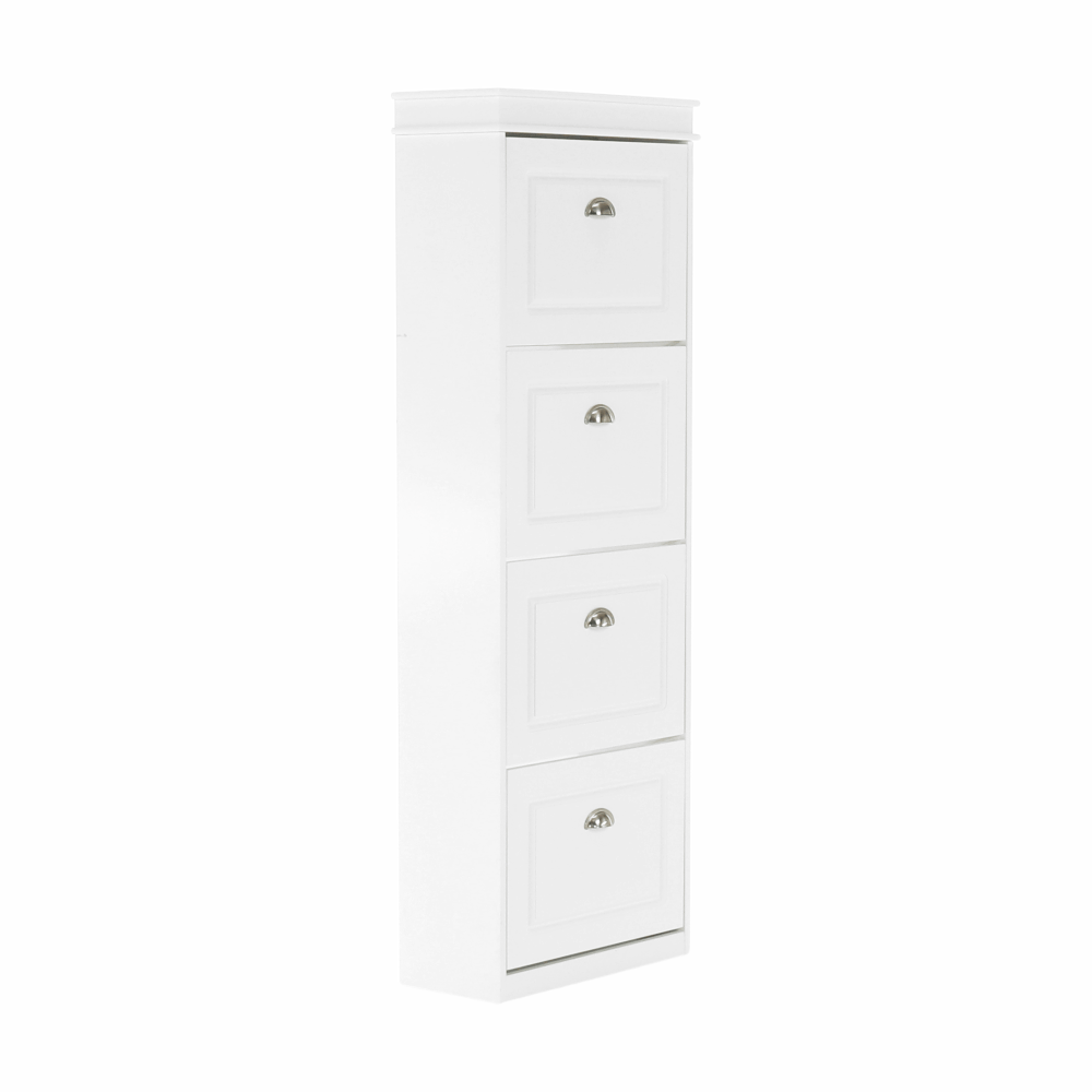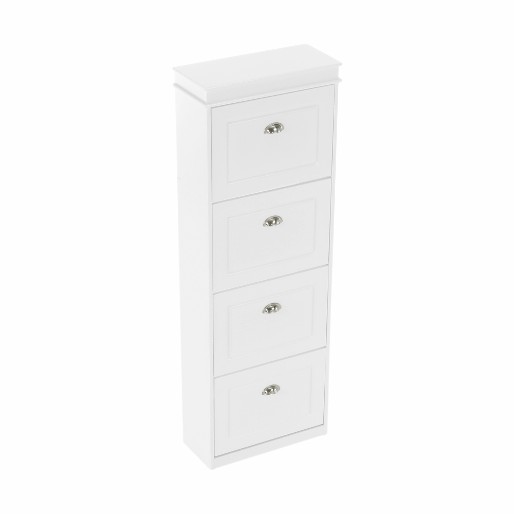 Pantofar SEBER TYP 3,Culoare: alb/griMaterial: MDF/PALDimensiuni (lxhxA): 53,5x152x24 cm4 compartimentePotrivit pentru 16 perechi de pantofiRafturi inclinateGreutate: 25,2 kgGreutate sustinuta: 90 kg