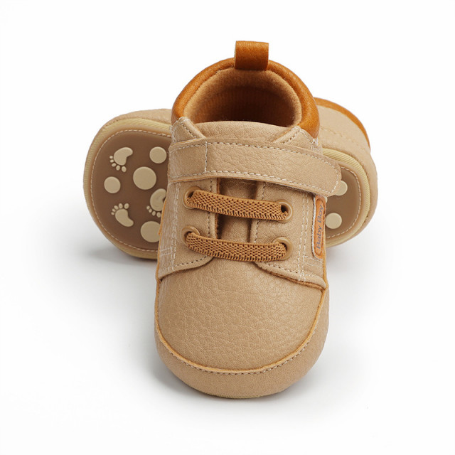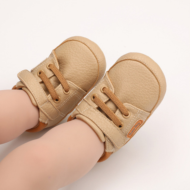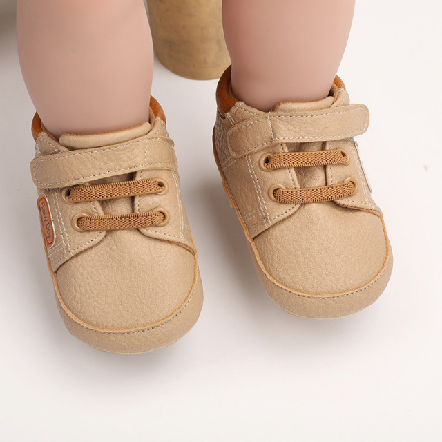 Marimi: 3 -6 luni ( lungime talpita la interior 10,5 cm, lungime talpita la exterior 11 cm) 6-9 luni ( lungime talpita la interior 11,6 cm, lungime talpita la exterior 12 cm) 9-12 luni (lungime talpita la interior 12,7 cm, lungime talpita la exterior 13 cm) Pantofiori pentru bebelusi, din material tip piele ecologica, se inchid cu sireturi din elastic si bareta cu arici intr-o parte. Culoare: crem Talpa: cauciuc moale si flexibil, antiderapant