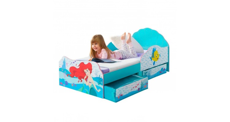 Faceți trecerea de la pătuț la primul pat mare, cu propriul ei pat pentru copii, frumos decorat cu personajul Mica Sirena. Confortabil, sigur și potrivit pentru o prințesă, patul pentru copii transformă camera intr-un loc de joacă subacvatic. Dimensiunea perfectă pentru copii, inaltime mica pentru a facilita urcatul sau coboratul din pat al celor mici și cu panouri laterale de protecție, micuțul tău va fi in perfecta siguranță, oferindu-ți liniște sufletească in timpul somnului. Patutul pentru copii are, de asemenea, două sertare de depozitare cu fermoar la indemană, pentru a-și păstra camera ordonată. Cadru de pat este sigur și robust si oferă o soluție de somn construită pentru a dura. In plus, acest pat prințes Disney este simplu de pus la punct cu instrucțiuni pas cu pas. Are o saltea de dimensiuni mici - 140cm (L) x 70cm (W). Salteaua nu este inclusă. Potrivit pentru 18 luni pană la 5 ani.Contraindicat copiilor mai mici de 3 ani. Jucaria/produsul poate contine piese mici care se pot inghiti sau inhala existand pericolul de sufocare sau nu este potrivita copiilor mai mici de 3 ani. Nu lasati ambalajele jucariilor/produselor la indemana copiilor. Indepartati orice ambalaj al jucariei/produsului inainte de a da jucaria/produsul copilului. Va rugam sa supravegheati copilul in timp ce se joaca/foloseste acest produs. Pastrati instructiunile si etichetele pentru referinte viitoare. Pastrati jucaria/produsul departe de foc; feriti jucaria/produsul de temperaturi ridicate si umiditate.