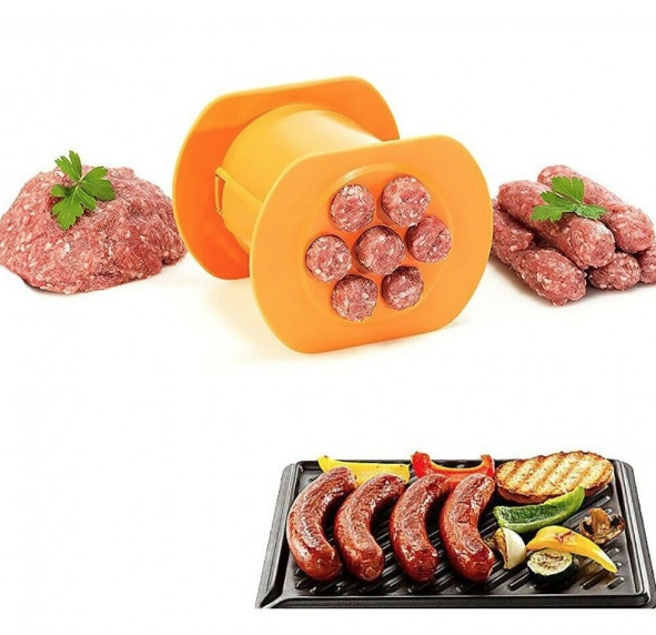 Ce poate fi mai bun decât a servi cârnați proaspeți într-o după-amiază însorită? Acum cu aparatul pentru cârnați procedura este mai rapidă și mai plăcută. Este acoperit cu material antiaderent și are un design special care poate forma 7 cârnați în același timp, făcând procesul de curățare mult mai ușor! Cu acest aparat poți prepara cu ușurință cârnați, păstrând în același timp forma perfectă. Aparatul pentru cârnați este un accesoriu absolut necesar oricărui amator de grătar și poate fi utilizat cu diferite tipuri de carne, cum ar fi porc, oaie, vită, curcan și altele, având un material de calitate alimentară care este sigur pentru întreaga familie! Cum se foloește? 1. Umpleți cilindrul presei cu pasta de mici; 2. Introduceți pistonul în presă; 3. Apăsați pistonul pentru a forma micii; Principiul de funcționare este ca cel de seringă.