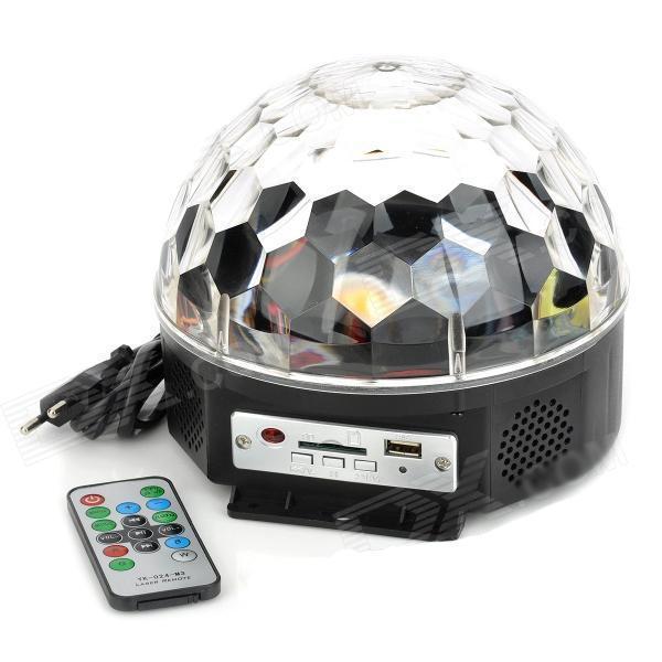 Proiector Disco Led Magic Ball Light Telecomanda inclusa si Redare Audio MP3 Glob de lumini disco tip laser disco cu telecomanda - redare audio mp3 globul reda fisiere in format audio: mp3 si multe alte formate audio cunoscute aflate pe memoria usb conectata la portul usb. produsul este conceput pentru a acoperi toate unghiurile cu lumina. efectele sunt de o calitate inalta, fapt datorat tehnologiei led care imbina sub forme de lupa nu mai putin de 82 fascicule sferice creand astfel o atmosfera unica. exteriorul dispozitivului este rezistent, astfel incat componentele sensibile din interior sa fie protejate. Unde puteti amplasa acest proiector glob disco led: discoteca club cafenea bar restaurant petrecere in familie locuinta proprie ambiental Specificatii proiector disco led audio mp3 cu telecomanda: duprafata transparenta din cristal (material plastic) ficare fasciol din cele 82 iese din glob printr-o lupa, efectul fiind mult mai elevat efectele speciale de spalare si proiectare a luminii posibilitate de amplasare atat in plan orizontal la nivelul solului cat si in plan vertical pe perete sau obiecte inalte de sustinere. 6 leduri de calitate superioara cate doua din urmatoarele culori: rosu, albastru, verde diverse moduri de functionare masuratori ale globului: 183 x 183 x 154 mm greutate: 550 grame redare fisiere audio, atat mp3 cat si multe alte formate stick cu muzica pentru teste oferit cadou functioneaza in mod continuu o noapte intreaga, pana dimineata fara a manifesta probleme tehnice in conditii de fum functioneaza in conditii normale la prizele din Romania de 220V putere leduri RGB: 6 x 3W, putere totala 18W-24W telecomanda cu baterie inclusa port USB pentru citirea stickurilor si a altor memorii usb slot card SD pentru introducerea de carduri cu muzica butoane de control aflate pe glob: Inapoi, Volum Scazut, Redare, Pauza, Inainte, Volum Ridicat Pachetul contine: proiector glob RGB de lumini cu led sico telecomanda stick-ul de memorie nu este inclus in oferta