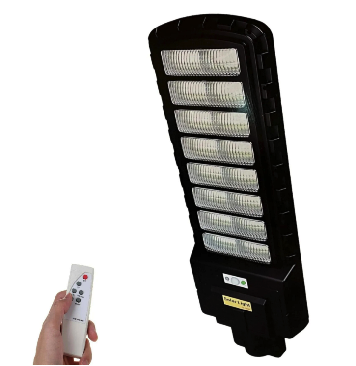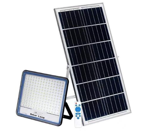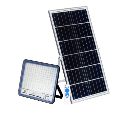 Proiectorul solar LED de 800 W este o soluție de iluminat exterior autonomă, perfectă pentru grădini, curți, parcări sau spații comerciale fără acces la rețea electrică . Funcționează exclusiv cu energie solară captată de panoul fotovoltaic și stocată într-un acumulator puternic (≈ 20 000 mAh), oferind iluminare continuă pe durata nopții. Inclusă este o telecomandă multifuncțională pentru pornire/oprire, reglarea intensității luminoase și programarea temporizatorului, astfel controlul luminii se face de la distanță. Designul robust, de exterior, cu protecție la apă și praf, asigură durabilitate și utilizare fără griji în condiții meteo variate. Specificații tehnice Putere LED: 800 W – iluminare puternică pentru spații mari; Acumulator: ≈20 000 mAh Li-ion – autonomie extinsă; Panou solar: integrat/external – captare eficientă a luminii solare; Telecomandă: inclusă – control la distanță cu funcții multiple; Timp de funcționare: ~10–14 ore/noapte (în funcție de vreme); Protecție: IP65/IP66 – rezistență la apă, praf și intemperii; Unghi de iluminare: ~120°; Moduri de funcționare: Auto (crepuscular), manual, programare timp; Montare: simplă pe perete, stâlp sau suport; panel size:330*390*7mm aluminium,grey proiector: 390x330x75mm
