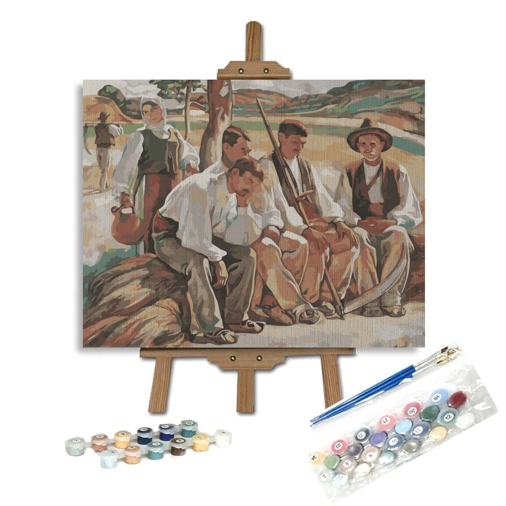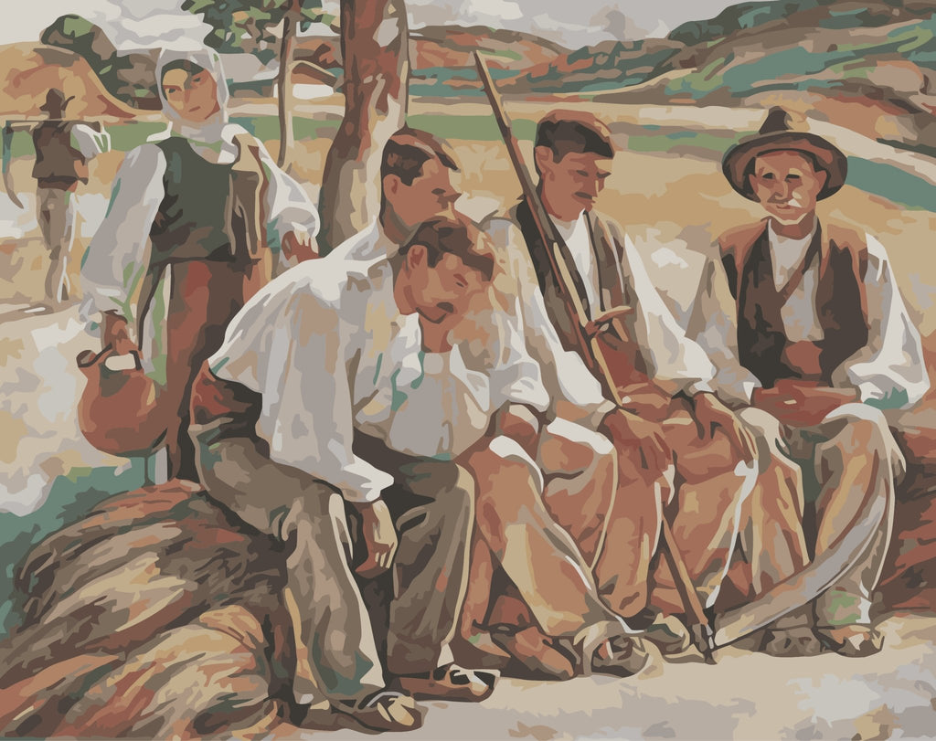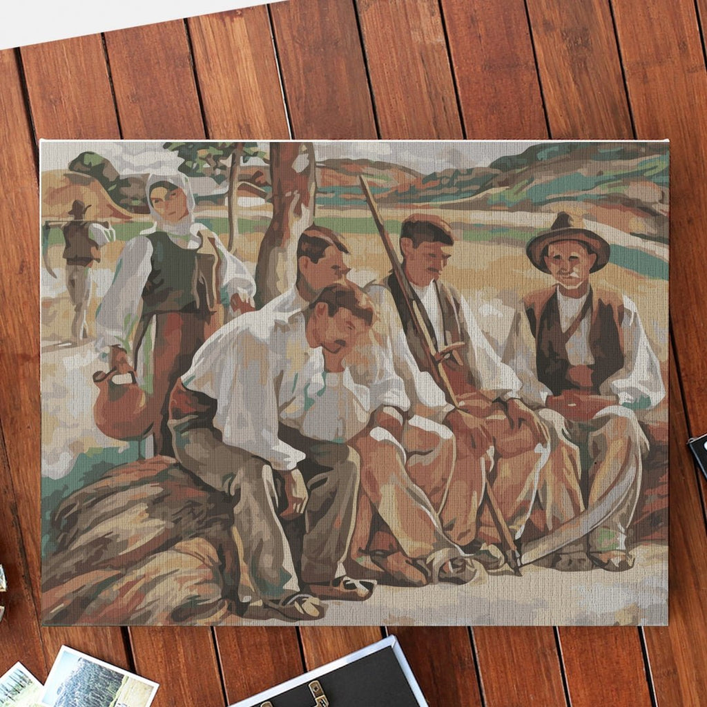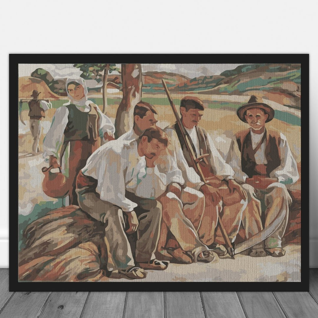 Resting (Cosași odihnindu-se) este pictura pe numere reproducere după o lucrare a celebrului pictor român Camil Ressu. Atras de viața simplă a omului din popor, Camil Ressu a pictat adesea țărani, câmpul verde și satul autentic. O temă similară, lumea satului, este redată în această pictură.