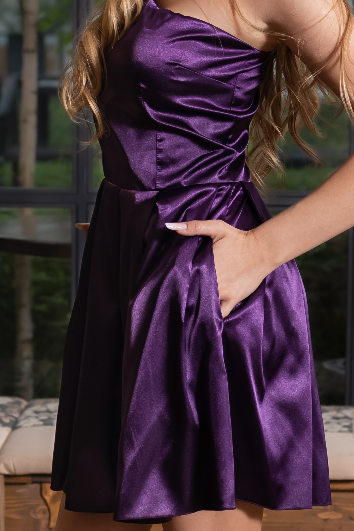 Rochie, eleganta din satin cu corsetCuloare: movCroi: corset si croi in closPe un umarTextura: satinInchidere cu fermoar la spatePrezinta dublura din satin pe interiorCompozitie: 100% poliester Modelul are 1,70 m inaltime si poarta masura S. INFO: Echipa noastra face toate eforturile in a prezenta cat mai bine culorile produselor prezentate pe site insa culorile pot diferi de situatia reala si pot varia in functie de setarile monitorului/dispozitivului dvs! Instructiuni folosire: