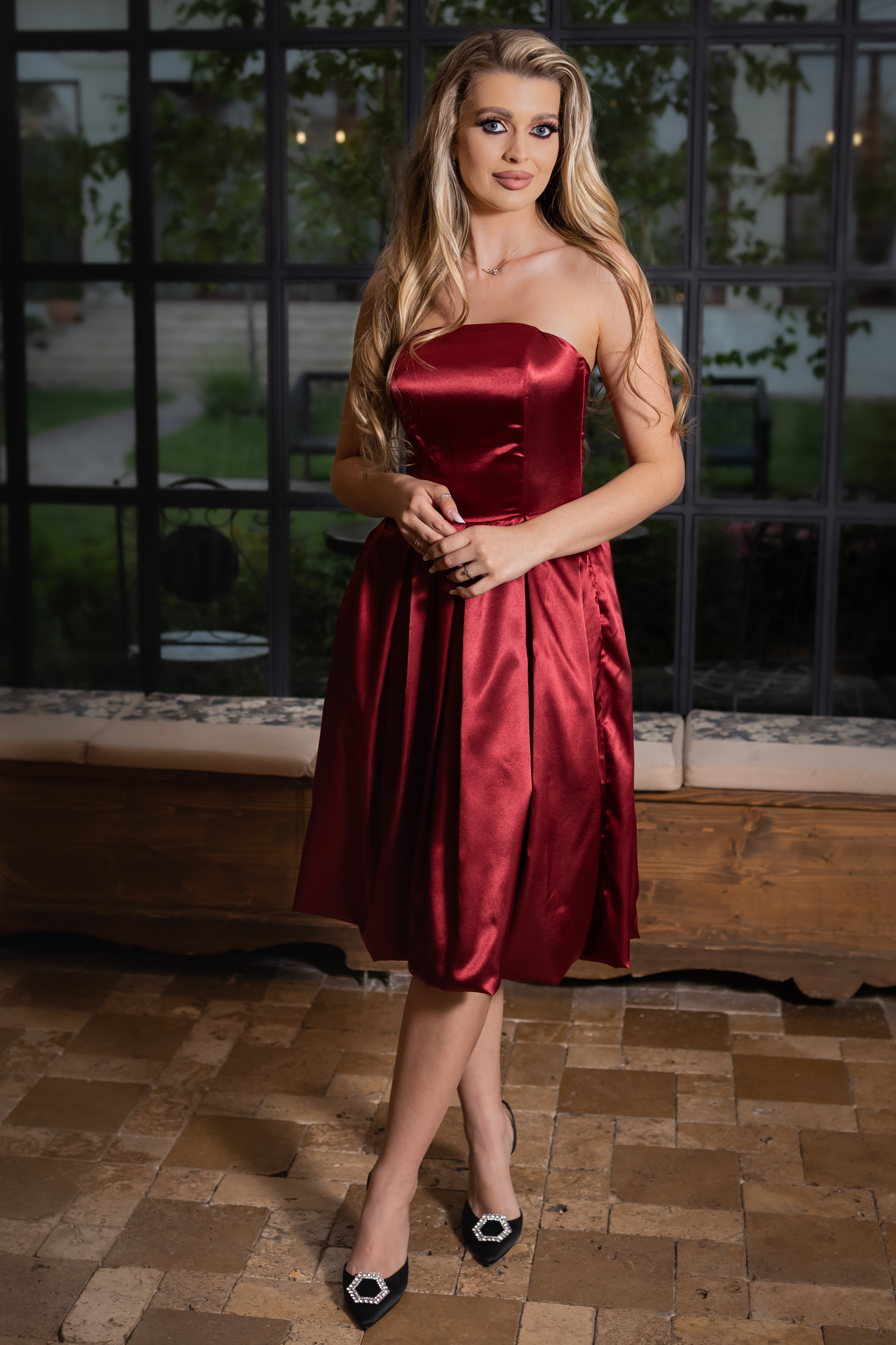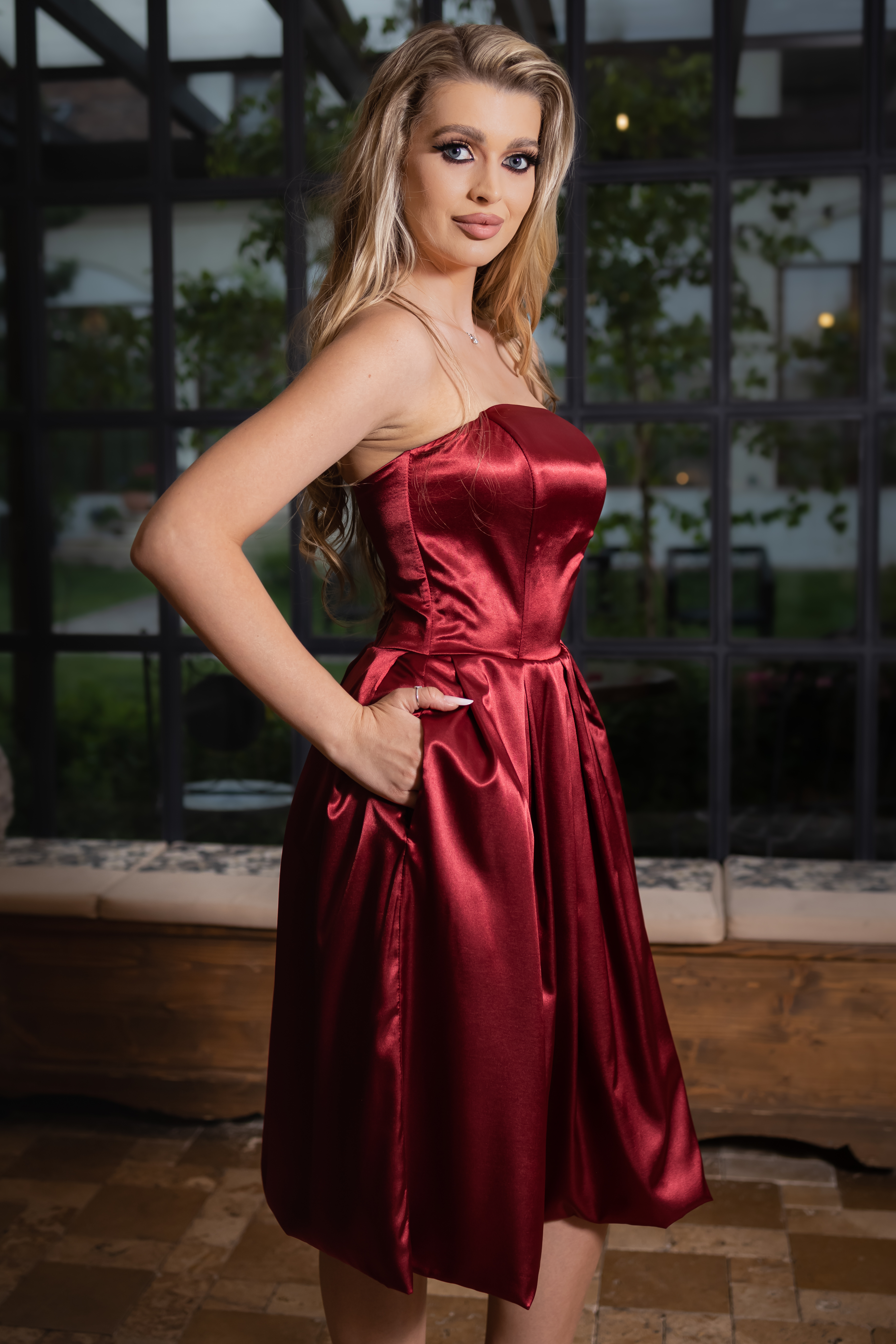 Rochie, eleganta din satin cu corsetCuloare: visiniuCroi: corset si croi in closFara maneciTextura: satinInchidere cu fermoar la spatePrezinta dublura din satin pe interiorCompozitie: 100% poliester Modelul are 1,70 m inaltime si poarta masura S. INFO: Echipa noastra face toate eforturile in a prezenta cat mai bine culorile produselor prezentate pe site insa culorile pot diferi de situatia reala si pot varia in functie de setarile monitorului/dispozitivului dvs! Instructiuni folosire: