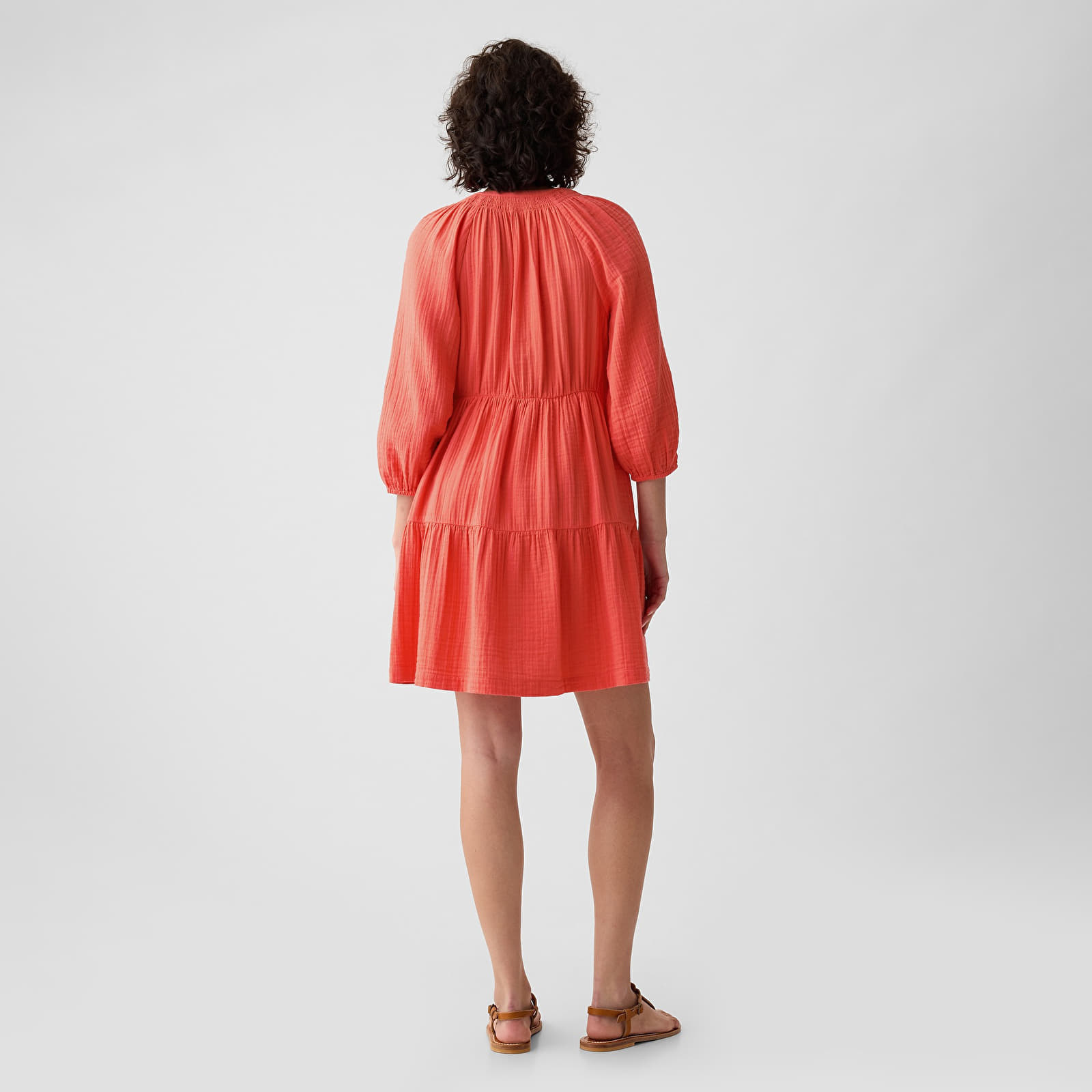Rochie GAP Longsleeve Gauze Mini Dress Fire Coral pentru 359 lei. Cod produs: 429447-02, material: 100% Bumbac