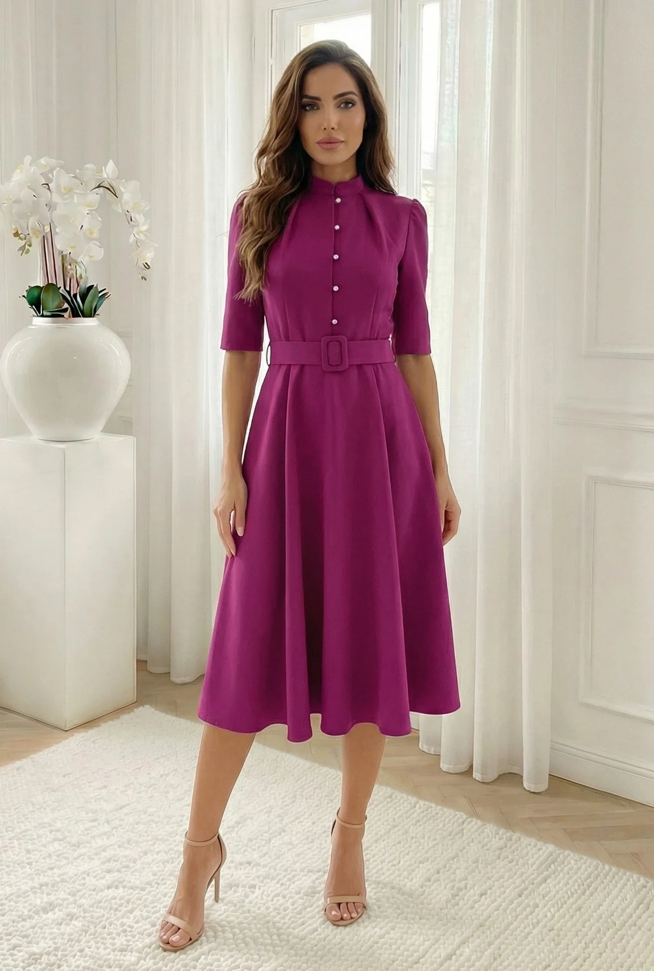 Rochie midi eleganta cu imprimeu floral, o piesa vestimentara sofisticata si rafinata pentru tinutele elegante de zi sau de seara. Confectionata dintr-un material vaporos, rochia are o captuseala fina care asigura confort la purtare. Decolteul petrecut su