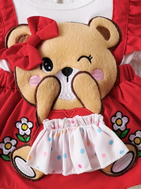 Marimi: 0-3 (70), 3-6 (80), 6-9 (90), 9-12 (100), 12-18 luni Material: 85% bumbac, 10% poliester, 5% elastane Acest set minunat pentru bebelusi este compus dintr-un body alb si un sarafan rosu vesel, decorat cu un ursulet adorabil brodat si aplicatii florale. Bretelele sarafanului au volanase delicate, oferind un aspect fermecator si jucaus. Include o bentita asortata, completand perfect tinuta. ✔ Material moale si confortabil pentru pielea sensibila a bebelusilor ✔ Design adorabil cu ursulet brodat si floricele aplicate ✔ Inchidere practica cu capse pentru schimbare rapida ✔ Ideal pentru ocazii speciale, petreceri, sedinte foto si tinute casual Alege aceasta tinuta superba pentru micuta ta si bucura-te de un look irezistibil! Comanda acum! Pantofiorii din imagine sunt cu titlu de prezentare si nu sunt inclusi in pret.