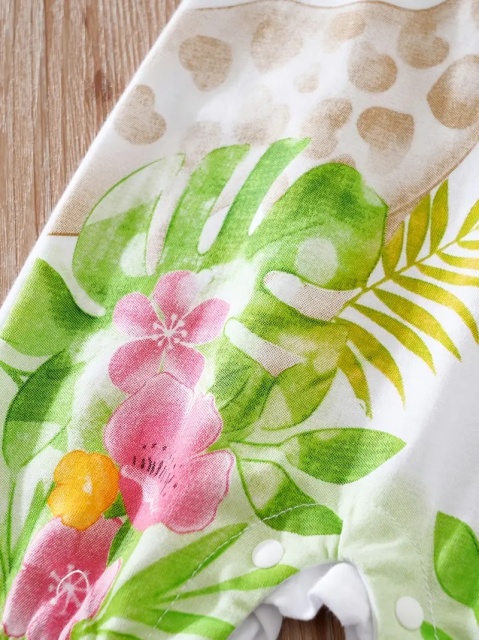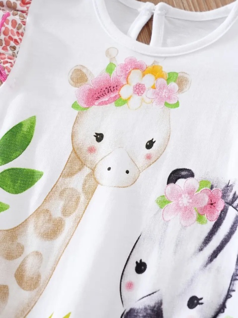Marimi: 3-6,6-9, 9-12, 12-18, 18-24 luni Material: 100% bumbac Salopeta adorabila pentru fetite, cu maneci scurte si pantaloni scurti, cu imprimeu vesel cu animalute dragalase. Este perfecta pentru zilele insorite, oferind un look proaspat si jucaus. Materialele moi si placute la atingere asigura confortul celor mici, iar culorile vibrante aduc un plus de energie garderobei micutei tale. Un outfit ideal pentru plimbari in parc in zilele calduroase de vara Pantofiorii din imagine sunt cu titlu de prezentare si nu sunt inclusi in pret.