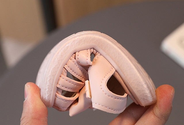 Sandale pentru fetite, din material tip piele ecologica, inchise cu barete in fata, cu o funda cu o papusica aplicata. Se inchid cu bareta cu arici intr-o parte. Culoare: roz pudra Talpa: flexibila, din cauciuc Marimi: 20 (lungime talpita in interior 12 cm) (16) 21 (lungime talpita in interior 12,5 cm) (17) 22 (lungime talpita in interior 13 cm) (18) 23 (lungime talpita in interior 13,5 cm) (19) 24 (lungime talpita in interior 14 cm) (20)