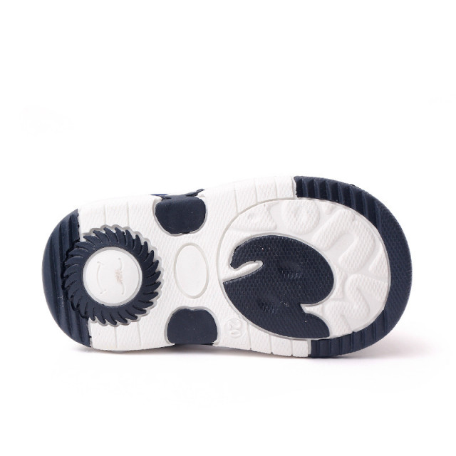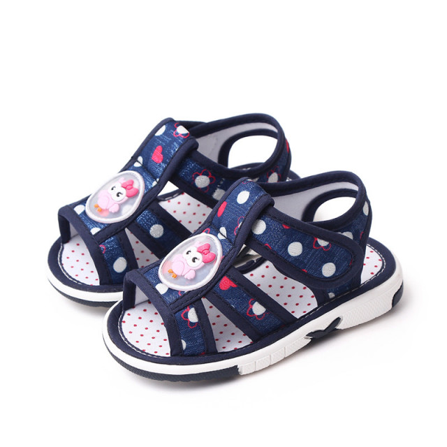 Marimi: 19 (lungime talpita in interior 12 cm) 20 (lungime talpita in interior 12,5 cm) 21 (lungime talpita in interior 13 cm) 22 (lungime talpita in interior 13,5 cm) 23 (lungime talpita in interior 14 cm) 24 (lungime talpita in interior 14,5 cm) Sandalute pentru fetite, din material textil, cu barete, cu o bufnita dragalasa cauciucata aplicata in fata. Se inchid cu bareta cu arici intr-o parte. Sunt foarte usoare, facilitand mersul cu usurinta al micutei. Culoare: bleumarine sidefat imprimate cu buline albe si inimioare Talpa: din cauciuc moale, ideala pentru primii pasi. In talpa au o piuitoare care se activeaza in timpul mersului. Recomandam masurarea talpitei bebelusului pentru alegerea marimii potrivite.