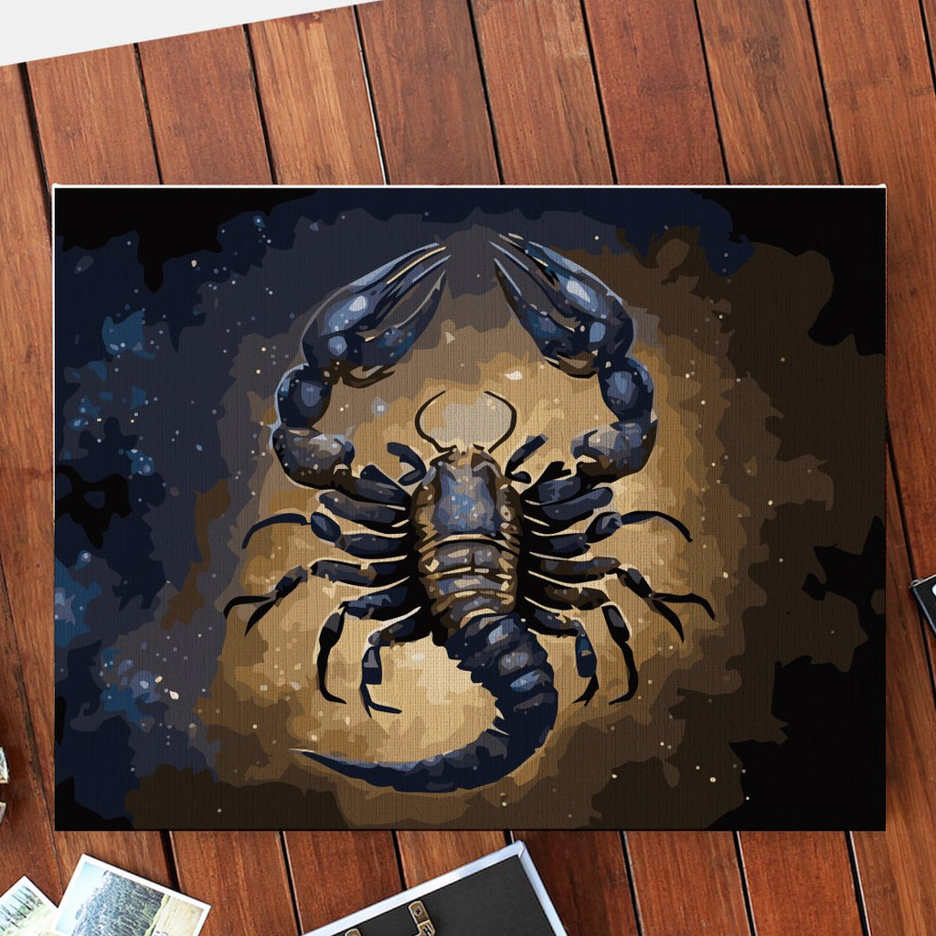 Un semn zodiacal complex este reprezentat în această pictură pe numere, Scorpion (Scorpio). Nativii acestei zodii sunt puternici, echilibrați și misterioși. Au o capacitate a lor unică de a te privi direct în suflet și de a te face să te simți în siguranță în preajma lor, încât să le faci și confesiuni speciale. Ai pățit?
