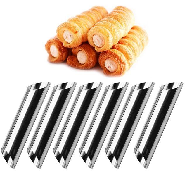 Set 12 forme prajituri: 6 forme cilindrice + 6 forme conice Ajutorul tau de nadejde din bucatarie! Pentru a pregati aperitive sau deserturi cu aspect deosebit, aceste forme pentru rulouri sunt ideale. Prepara aluatul, ruleaza-l pe accesoriul de gatit si coace-l in cuptor. Dupa aceea il poti umple fie cu o compozitie dulce, fie cu una sarata. Forme conice pentru rulouri patiserie set 6 bucati. Sunt ideale pentru prepararea rulourilor de patiserie dulci sau sarate, umplute cu amestec de branza, fructe, etc. Material: Otel inoxidabil. Set de 6 piese. Dimensiuni: L 8,5 cm, diametru 2,5 cm. Forme tubulare pentru rulouri patiserie. Material: Otel inoxidabil. Set de 6 piese. Dimensiuni: L 8,5 cm, diametru 2,5 cm