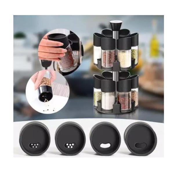 Set 12 recipiente pentru condimente cu suport rotativ