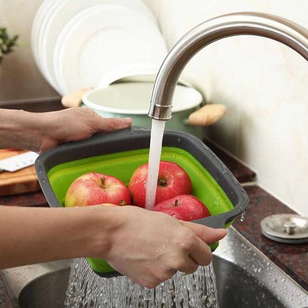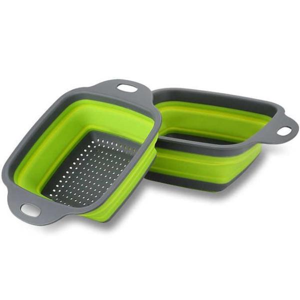 Set 2 castroane pliable cu sita Un set practic si util in orice bucatarie, dar mai ales in camping si picnic. Cu ajutorul acestui set 2 castroane/sita pliabile puteti spala alimentele, dar si servi. Ocupa extrem de putin loc, au dimensiuni diferite si sunt realizate din silicon. dimensiuni castron mic: 24 x 18,5 x 7,7 cm cm dimensiuni castron mare: 29 x 22 x 8,8 cm material: silicon culori in functie de stoc furnizor