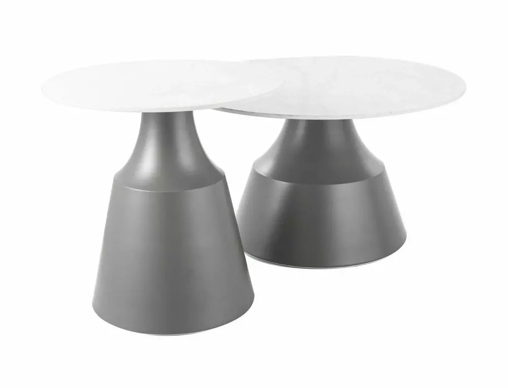 Setul de mese de cafea Itaka aduce o notă de lux și rafinament în decorul dvs. Blaturile oferă un aspect elegant și sofisticat, aducând profunzime și eleganță în încăpere. Cadrul acestora adaugă un contrast subtil și o notă de strălucire, conferind acestor mese un aspect captivant și modern. Dimensiuni: Masa 1: Diametru: 70 cm Înălțime: 40 cm Masa 2: Diametru: 50 cm Înălțime: 50 cm Detalii tehnice: Produsul este realizat din ceramică și metal. Culoare: Alb / gri mat Produsul nu este montat. Asamblarea este rapidă și ușoară.