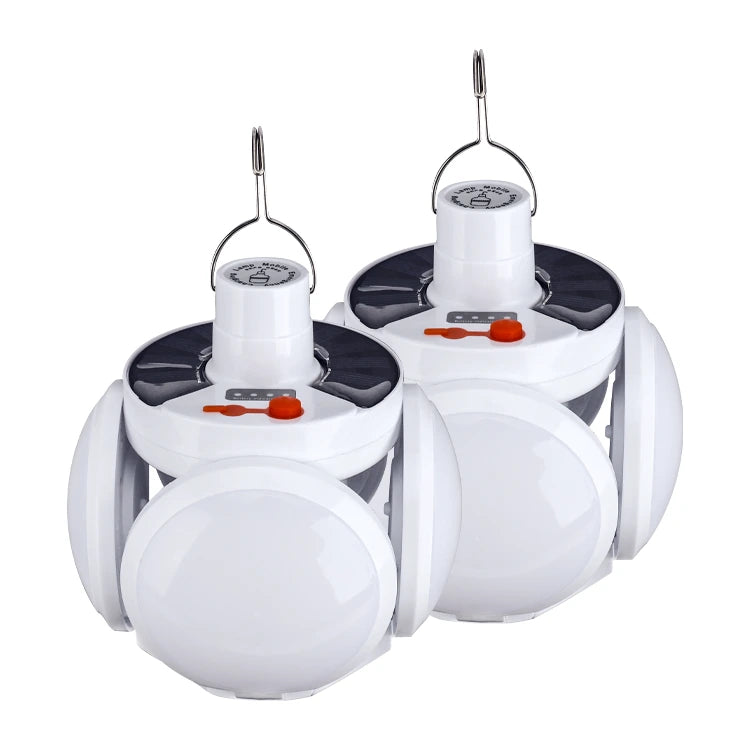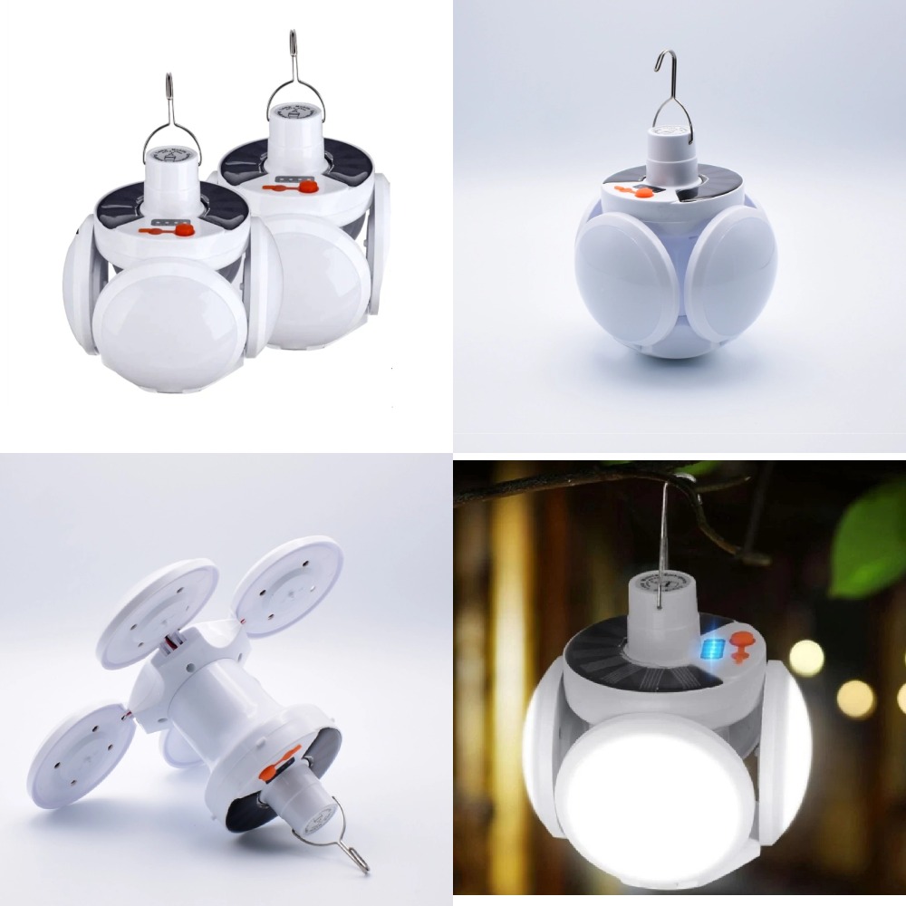 Set 2 x Bec cu panou solar si acumulator Bec solar cu 4 brate rabatabile si 5 trepte de iluminat Bec cu panou solar si acumulator, 4 brate rabatabile si 5 trepte de iluminat vine cu un cu design simplu si elegant, durabil, luminos, multifunctional, practic, oferindu-va o experienta de iluminare diferita. P anoul solar se incarca pentru a asigura un flux continuu de electricitate fara a plati facturile de energie electrica pe tot parcursul anului. Cu ecran translucid de inalta calitate, emisie uniforma de lumina, emisie de lumina omnidirectionala la 360 ° Specificatii tehnice: Lampa solara pliabila Material: material ABS Comutator: Buton comutator Panou solar din siliciu policristalin de 5,5 V Baterie: baterie litiu 18650 Sursa de lumina: 45 LED Chip Lamp Beads Domeniu de iluminare: 60 cm2 zona Lumina: lumina alba 4 brate rabatabile Incarcare: USB / energie solara Moduri de iluminat total 5 – Moduri STROBO/SOS 2 Intrerupator: Lumina puternica, lumina medie, lumina slaba, Blast, SOS Mod iluminat: Mediu ~ Mic ~ Puternic ~ Strobo ~ SOS. Evaluare impermeabila: IP65 Timpul de incarcare solar: 6~12 (h) Timp incarcare prin USB incarcator : de 6 (h) Timp de lucru 6~8 (h) Dimensiuni brate deschise: 14cm x 24cm Dimensiuni brate inchise : 14cm x 11,5cm. Alimentare: panou solar incorporat