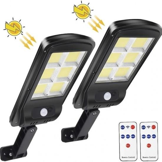 Set 2 x Lampa solara cu 6 celule, LED-uri COB si telecomanda Este usor de instalat fara a trage fire. Este necesar doar sa se pozitioneze produsul pe perete cu un surub. In timpul zilei, lumina nu este aprinsa, doar in timpul noptii. Lampa solara rezistenta la apa ip65, rezistenta la caldura, potrivita pentru majoritatea tipurilor de vreme. Telecomanda Panou solar incorporat Putere panou 5.5V/1.5W Conceput din material Negru Acrylic + ABS Acumulatori incorporati 2×3.7×3000 mHA Tensiune de lucru 5V Dimensiuni 28/15/3 cm