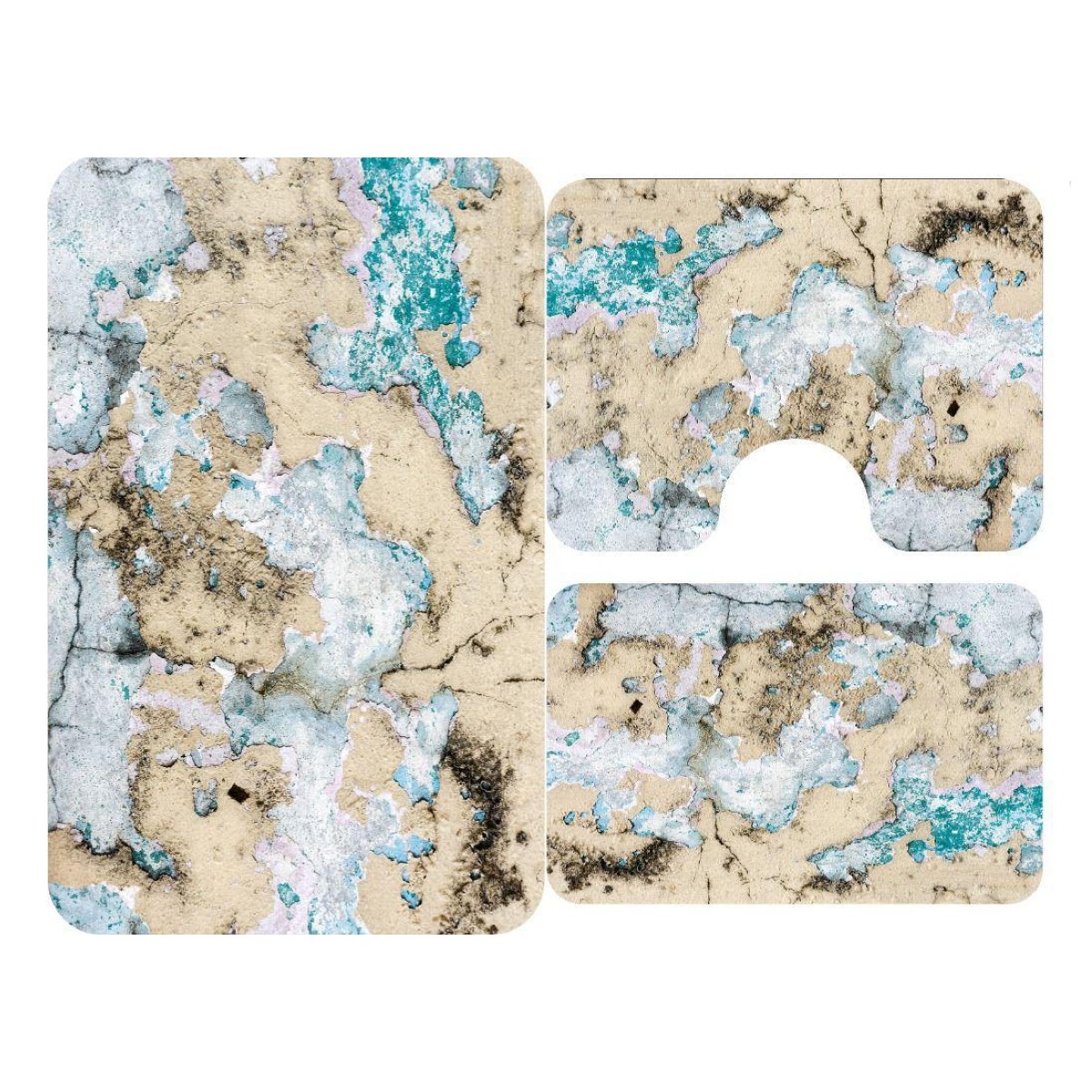 Set 3 covorase antiderapante de baie Setul de covoare pentru baie este antistatic, absorbant si usor de intretinut. Cu suport anti-alunecare, asigura o iesire fara riscuri din cada de baie. Covorasul pentru suportul de la chiuveta va ofera caldura si confort. Pachetul include: 1 covoras pentru baie, 100 x 60 cm 1 covoras pentru suportul de la chiuveta, 50 x 60 cm 1 covoras pentru WC, 50 x 60 cm Intretinere produs: Poate fi curat foarte usor cu aspiratorul Poate fi curatat prin stergere cu spuma unui amestec din apa cu detergent Poate fi spalat chimic la masini speciale insa fara a fi folositi inalbitori Dupa curatare covorul se lasa la uscat, dar nu se expune in lumina directa a soarelui Nu se foloseste fierul de calcat