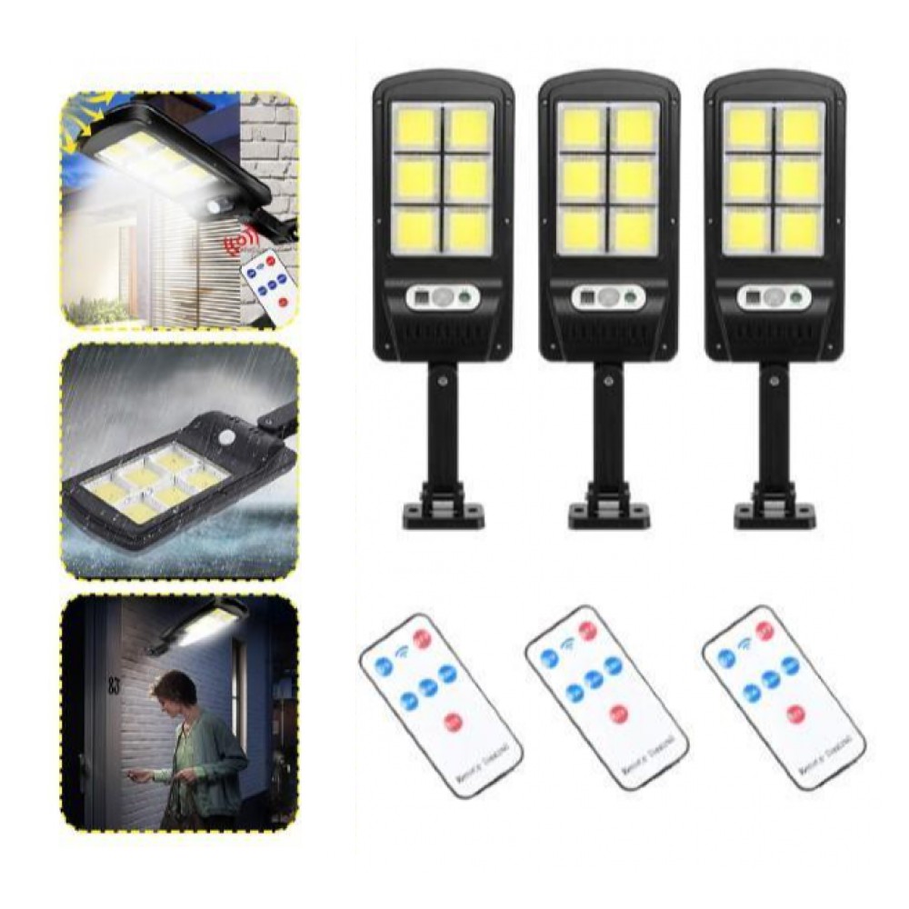 Set 3 x Lampa solara cu 6 celule, LED-uri COB si telecomanda Este usor de instalat fara a trage fire. Este necesar doar sa se pozitioneze produsul pe perete cu un surub. In timpul zilei, lumina nu este aprinsa, doar in timpul noptii. Lampa solara rezistenta la apa ip65, rezistenta la caldura, potrivita pentru majoritatea tipurilor de vreme. Telecomanda Panou solar incorporat Putere panou 5.5V/1.5W Conceput din material Negru Acrylic + ABS Acumulatori incorporati 2×3.7×3000 mHA Tensiune de lucru 5V Dimensiuni 28/15/3 cm