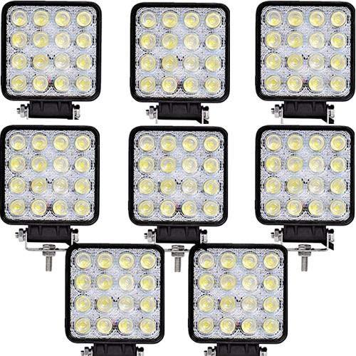 Set 8 x proiector LED auto offroad 48W Gama larga de utilizar: autoturisme, utilaje, camioane, ambarcatiuni si alte Durata de viata foarte mare, de peste 30.000 de ore de functionare Carcasa din plastic rezistenta la socuri Protectie la apa si anticoroziune: poate fi utilizat in ploaie si in medii grele de lucru (praf, noroi, etc) Specificatii produs: Putere: 48W Numar leduri: 16 Tensiunea de lucru: 12V Clasa protectie: IP 67 Amperaj: 1.8A@12V, 0.9A@24V Culoare corp: Negru Material lentila: Policarbonat Bracketi montaj: Aluminiu