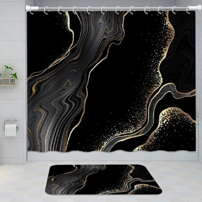 Set pentru baie cu 2 piese Perdea pentru dus: 180 cm x 180 cm Covoras de baie: 60 cm x 40 cm Material perdea: PVC Material covorase: textil