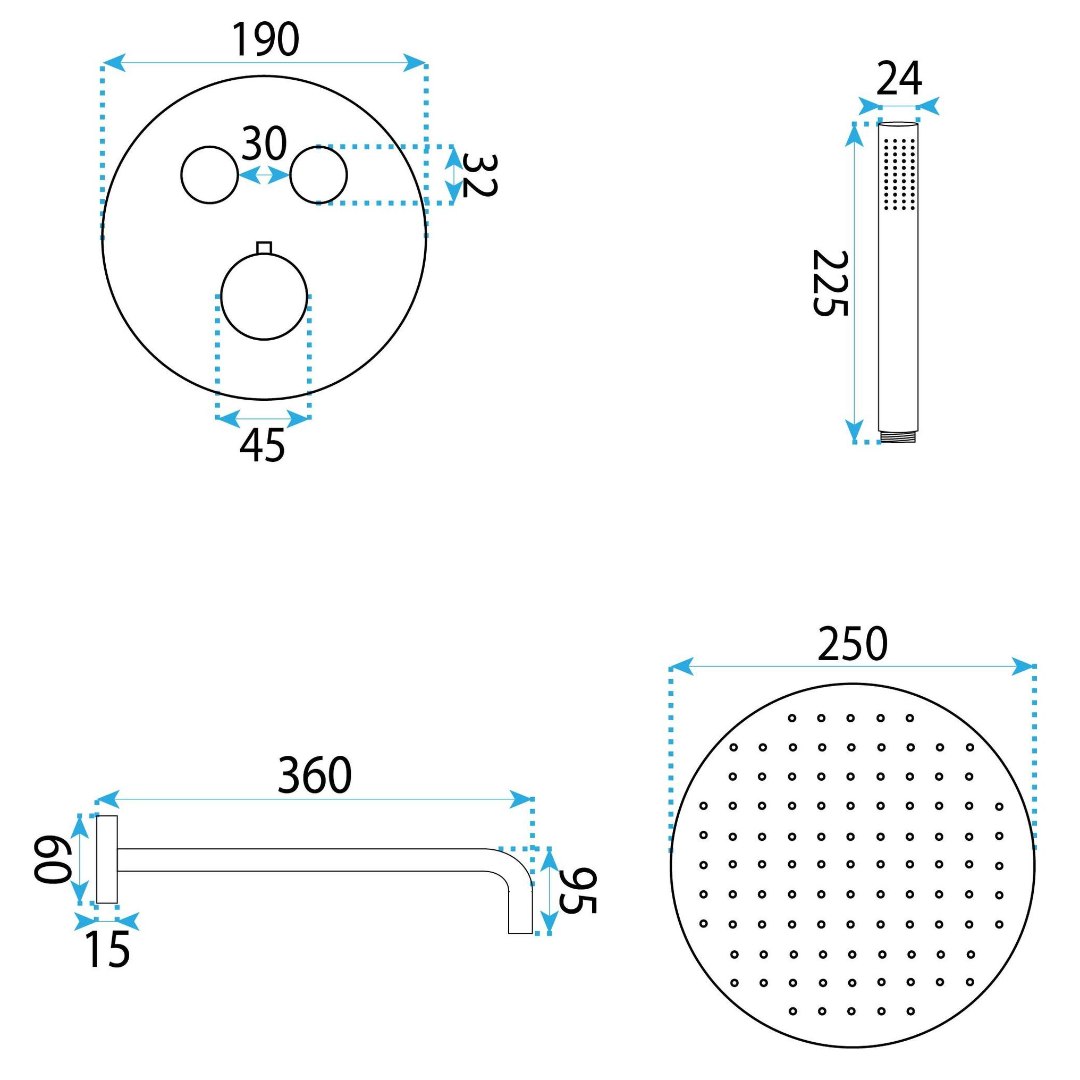 Bucurati-va de lux si control precis al temperaturii cu sistemul de dus incastrat Rea Lungo Diamond cu baterie termostatica, in finisaj Cupru Lucios. Acest set combina designul unic cu detalii diamantate si tehnologia moderna. Realizat din materiale durabile, inclusiv dus fix metalic si corp acoperit cu un strat rezistent PVD, asigura fiabilitate si un aspect exceptional. Baterie termostatica – mentine temperatura constanta a apei (blocare la 40 °C), protejand impotriva variatiilor bru