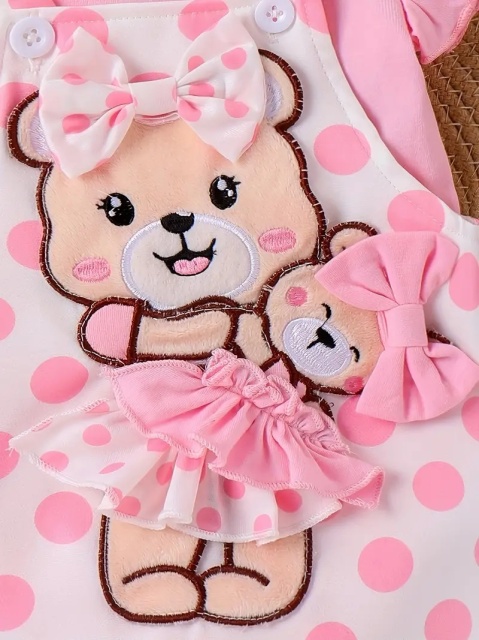 Marimi: 0-3, 3-6, 6-9, 9-12, 12-18 luni Material: 95% bumbac, 5% elastane Set roz pentru fetite compus din body, sarafan si bentita, ideal pentru ocazii speciale. Body-ul din bumbac roz are maneci scurte cu volanase delicate si inchidere cu capse in partea inferioara, asigurand confort si usurinta la imbracare. Sarafanul alb, cu imprimeu de buline roz, este decorat cu un ursulet cu puiul, cu fundite aplicate, oferind un aspect jucaus si elegant. Bentita asortata completeaza perfect tinuta. ? Material: Bumbac moale si respirabil ? Culori: Roz si alb, potrivite pentru evenimente speciale ? Ocazii: Petreceri, aniversari sau plimbari speciale Adauga acest set adorabil in garderoba micutei tale! Comanda acum! Pantofiorii din imagine sunt cu titlu de prezentare si nu sunt inclusi in pret.