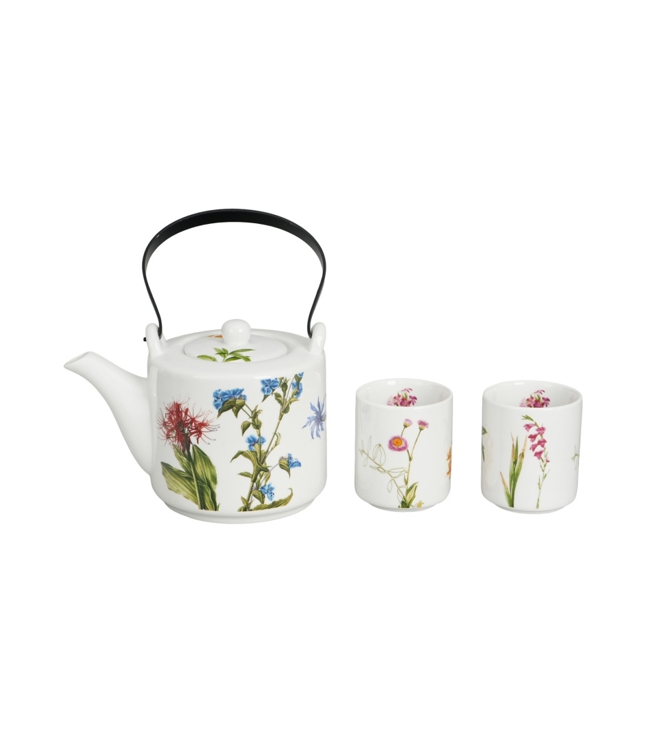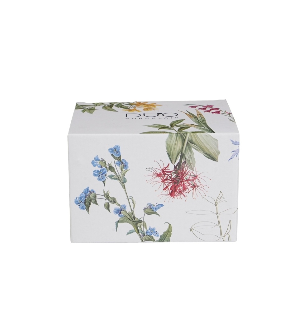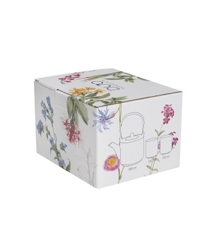 Un set mic, complet, pentru când vrei să faci ceai din frunze fără bătăi de cap. „Colors of Nature” combină un ceainic cu infuzor și două cești, cu un decor botanic delicat, în culori naturale. Ce primești 1 x ceainic 600 ml 1 x infuzor (sită) din oțel inoxidabil 2 x cești 120 ml 1 x cutie de cadou (colorbox) De ce îți va plăcea Infuzare direct în ceainic, fără accesorii suplimentare Controlezi ușor intensitatea: scoți infuzorul când e gata 600 ml + 2 cești: ideal pentru 1–2 porții, servite frumos Porțelan New Bone China: aspect fin, crem-alb, cu luciu discret Decor botanic cu flori de câmp: arată foarte bine pe masă și în cadou Cum îl folosești: Pune ceaiul (frunze) în infuzor. Așază infuzorul în ceainic și toarnă apă la temperatura potrivită. Lasă la infuzat, apoi scoate infuzorul ca să oprești infuzarea. Servește în cele două cești. Clătește piesele după utilizare. Îngrijire și întreținere Mașină de spălat vase: Da Microunde: Da Detaliu de stilCeainicul are un mâner arcuit (negru), iar ceștile sunt fără toartă, tip „pahar” mic – arată unitar și modern, fără să fie pretențios.
