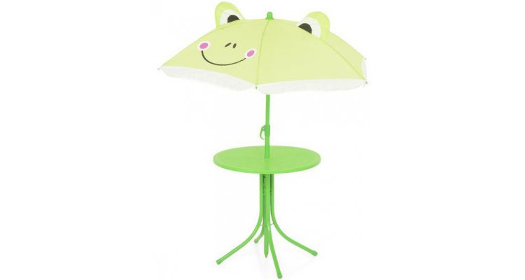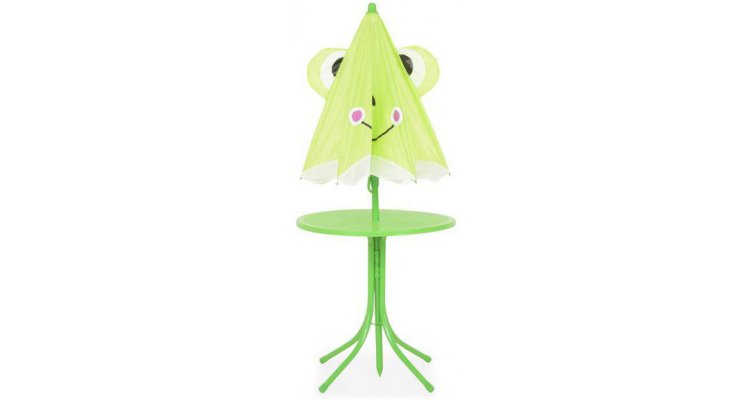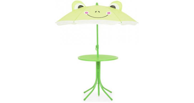 Mobilier realizat din otel vopsit in camp electrostatic, plastic cu protectie UV . Sezutul si spatarul scaunelor sunt realizate din poliester rezistent la apa si impotriva decolorarii. Scaunele sunt pliabile. Copertina umbrelei este realizata din poliester rezistent la apa si impotriva razelor UV . Dimensiuni: masa 50 x 48Hm scaun 38 x 23 Varsta : 3-4 ani