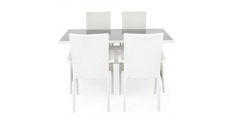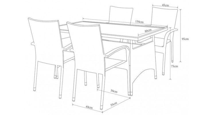 Transformați-vă spațiul exterior într-o oază de relaxare cu Setul de Mobilier pentru Terasă/Grădină Presley, compus din 4 scaune și o masă elegantă. Cu un design inspirat, acest set aduce confortul în grădina sau pe terasa dvs. Realizat dintr-o structură de oțel vopsită în câmp electrostatic și împletită cu fibre sintetice rezistente la UV, acest mobilier rezistă cu grație condițiilor exterioare. Masa impresionează cu un blat din sticlă securizată de 5 mm, oferind un aspect modern și funcționalitate durabilă. Scaunele suprapozabile adaugă practicitate spațiului. Schimbați-vă rutina și serviți masa în aer liber, bucurându-vă de momente plăcute cu familia și prietenii dvs. Caracteristici: Material masa: Oțel, fibre sintetice, poliester și sticlă securizată Culoare: Gri Dimensiuni Masa: L.150 x l.90 x H.75 cm Grosime Blat Masa: 0,5 cm Scaun Suprapozabil: 4 buc. Dimensiuni Scaun: L.55,5 x l.63 x H.95 cm Material Structura Scaun: Aluminiu, fibre sintetice Transformați-vă spațiul exterior cu eleganță și confort folosind setul de masa si scaune pentru terasa Presley pentru momente de neuitat sub cerul liber!
