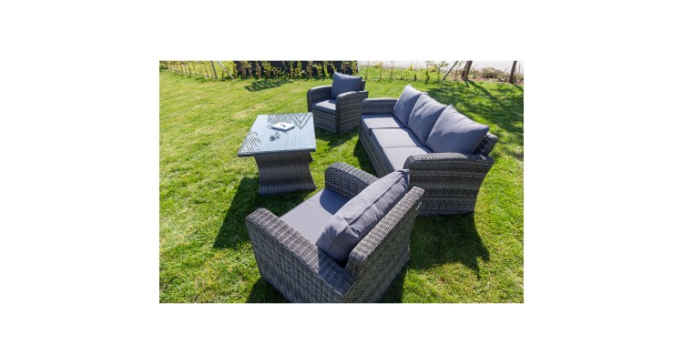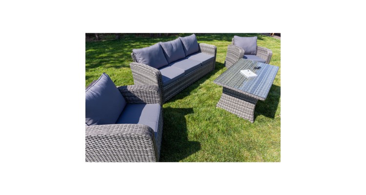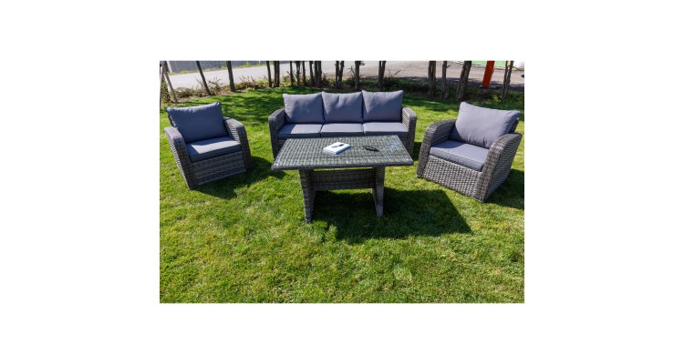 Setul de mobilier de gradina PREMIUM Monaco este o combinatie de eleganta clasica si stil modern. Unicitatea mobilierului prezentat este introdusa in primul rand printr-o canapea mare de 3 locuri, care, in combinatie cu fotolii mari, va oferi relaxare pentru intreaga familie sau prieteni. Designul clasic si functionalitatea ridicata a setului vor fi perfecte in gradina sau pe terasa, dar si in interiorul apartamentelor, caselor sau hotelurilor. Caracteristicile produsului: -mobilierul este destinat atat pentru uz extern, cat si pentru interior; Setul include: o canapea functionala de 3 locuri, 2 fotolii mari confortabile cu perne masa mare; -structura este realizata din aluminiu vopsit in camp electrostatic, care asigura stabilitatea si usurinta structurii, precum si rezistenta completa la rugina; -intregul este finisat cu tehnoratan de cea mai buna calitate intr-o nuanta naturala, care imita perfect ratanul natural; -suprafata mesei este acoperita cu sticla securizata de 5 mm, datorita careia este vizibila structura frumoasa a panglicii de tehnoratan; -pernele ofera un confort maxim si au huse detasabile, astfel incat nu exista nici o problema in ceea ce priveste curatarea acestora in cazul murdariei; -intregul este foarte usor de pastrat curat si este perfect pentru utilizarea de zi cu zi datorita utilizarii materialelor de cea mai inalta calitate; (tehnoratan, aluminiu) -setul nostru inseamna durabilitate maxima, rezistenta la conditiile meteorologice si radiatii UV; -mobilier pentru gradina sau terasa, perfect pentru interioare de case si hoteluri; Dimensiuni produs: Fotoliu: 81x80x77 Canapea: 200x80x77 Masa: 120x71x65