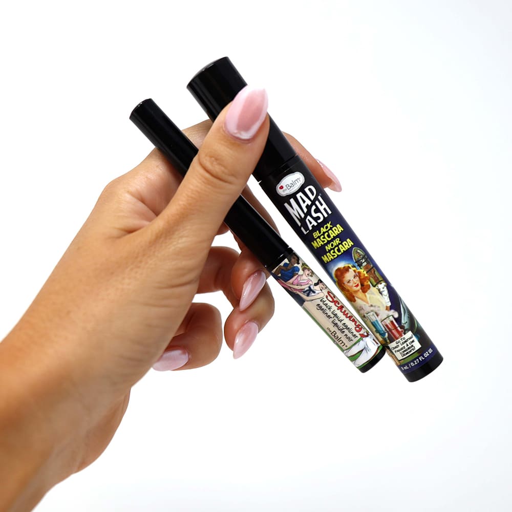 Mascara theBalm Mad LashCe este: theBalm Mad Lash mascara ce ofera volum si alungine in acelasi timp. Textura ultra cremoasa imbraca fiecare geana in parte, fara a le incarca. Pentru un efect mai intens, aplicati al doilea strat de mascara.Beneficii:- genele devin mai lungi si mai dese- separa genele si le imbraca intr-un negru intens- nu incarca si nu le lipeste.Cum se foloseste: Se aplica prin miscari de zig-zag de la baza genelor spre exterior. Contur ochi theBalm Schwing! Liquid EyelinerIL IUBIM PENTRU CA:✔Thin ✔Felt-tip applicator ✔Matte finish ✔Shimmering metallicPOWER INGREDIENTS:✔ Aplicator subtire si conic care ofera precizie, linii subtiri si groase ✔ Poate fi folosita atat pentru machiajul fetei, dar si al ochilor ✔ Ideala pentru machiajul de zi cu zi sau de searaFORMULA: ✔ Rezistenta si pigmentata#THEBEST: ✔ Aplicati pe linia genelor de la coltul exterior pana in coltul interior al ochiului ✔ Utilizati varful pentru linii subtiri si inclinati pentru linii groase ✔ Indepartati cu ajutorul unui demachiant pe baza de ulei.