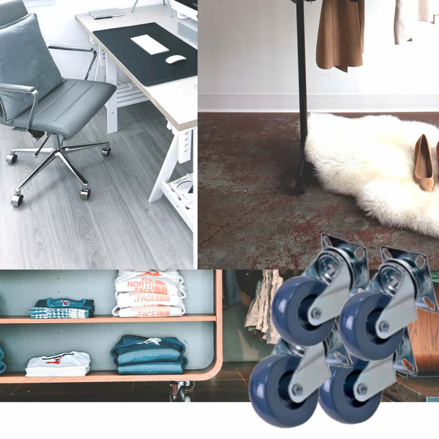 Set roti universale cu pivot, 4 bucati, 50 mm Acest set de 4 de roti pivotante va fi accesoriul perfect pentru echipamente si mobilier de mici dimensiuni, precum un banc de lucru, un carucior, o masuta de cafea, un suport pentru plante, un raft de carti, un carut de cumparaturi etc. Aceste roti sunt fabricate din cauciuc, care se remarca printr-o buna rezistenta la socuri si vibratii, permitand rotilor sa functioneze lin si silentios. In plus, suprafetele lor moi protejeaza eficient podeaua impotriva zgarieturilor. Pe langa aceasta, cadrul din fier zincat este rezistent la rugina si adauga, astfel, un plus de robustete si durabilitate rotii. Fiecare roata poate suporta o greutate maxima de pana la 45 kg. Set roti universale cu pivot 4 x Roti universale cu pivot Diametru: 50 mm Set - 4 bucati Set 4 roti universale pentru scaun sau masa, diametru 5 cm, 4 bucati.