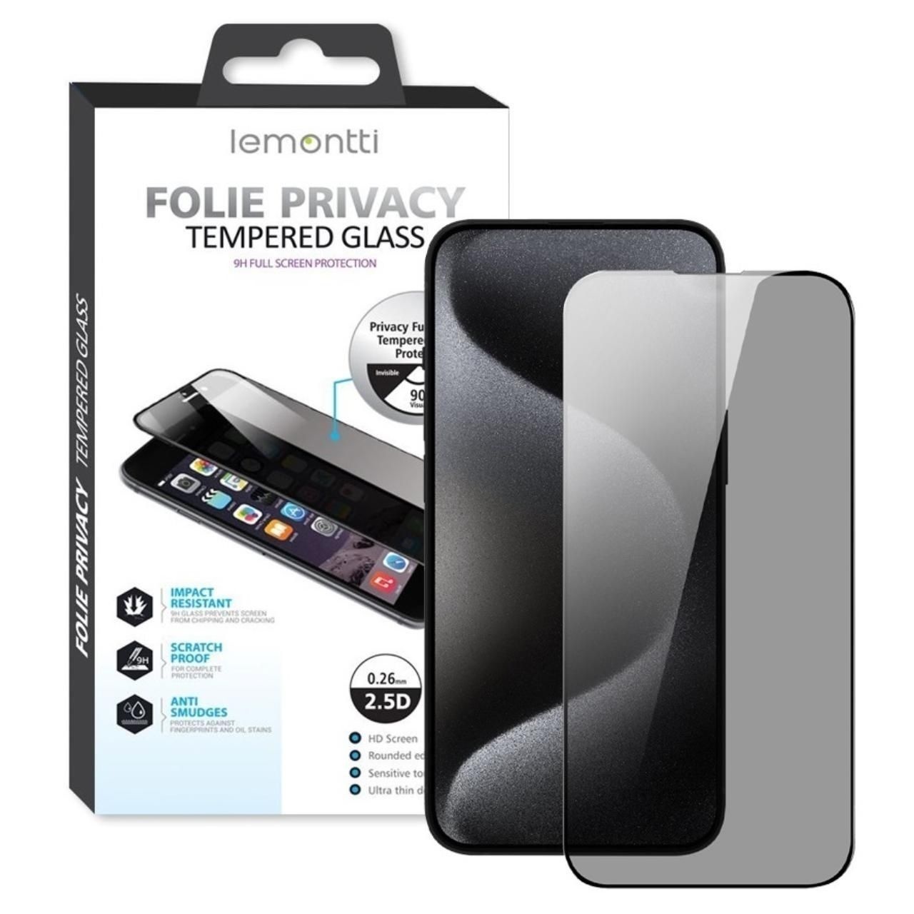 Folie sticla privacy Full Fit iPhone 15, negru, Lemontti