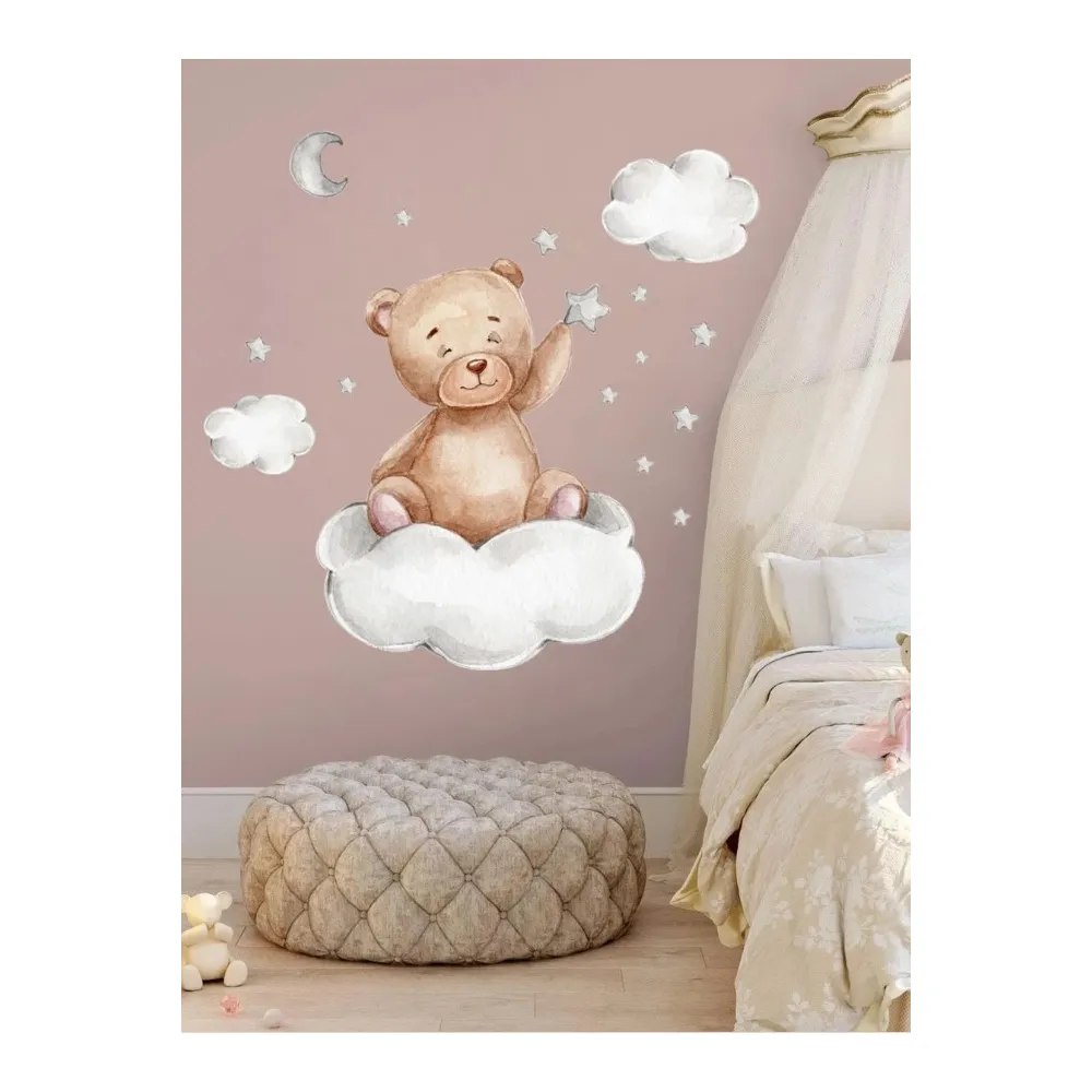 Sticker Perete Autocolant Ursuleț pe Nor Dimensiuni sticker: 30x45cm Decorează camera în cel mai rapid, ușor și frumos mod posibil. Cu ajutorul unui sticker autocolant decorativ poți transforma un perete simplu în ceva extrem de plăcut vizual! Stickerele se lipesc și dezlipesc extrem de rapid. Sute de modele, culori și personaje preferate, potrivite atât pentru tine, cât și pentru copilul tău! Poți alege un sticker de perete în funcție de designul camerei, culorilor preferate și nu în ultimul rând, în funcție de buget. Garantăm cel mai bun raport Calitate-Preț! Cu ajutorul imaginației, poți combina mai multe stickere de perete și îți poți crea propria poveste! Potrivite pentru orice camera din casa ta, poți alege un sticker de perete si sa decorezi in mod ingenios. Alege stickerele care te reprezintă din colecția noastră variata si oferă un nou aspect casei tale! Stickere de perete sunt concepute pentru a fi utilizate pe suprafețe netede si uscate.
