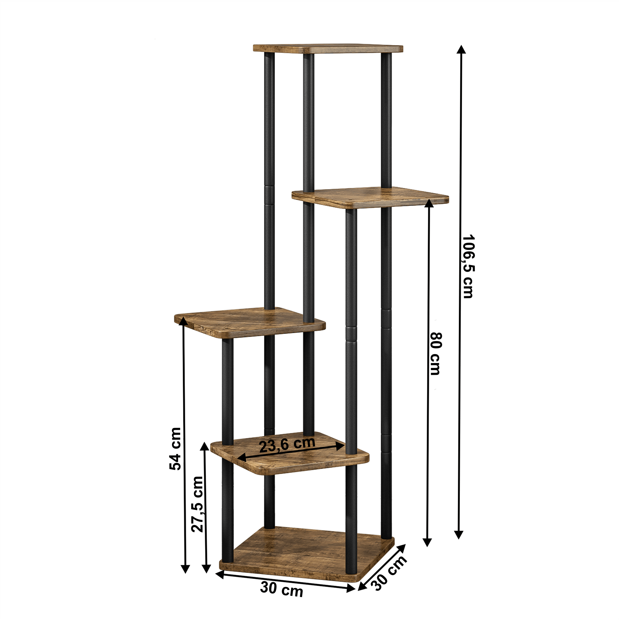 Suport de flori din metal, negru/lemn rustic, ADITE