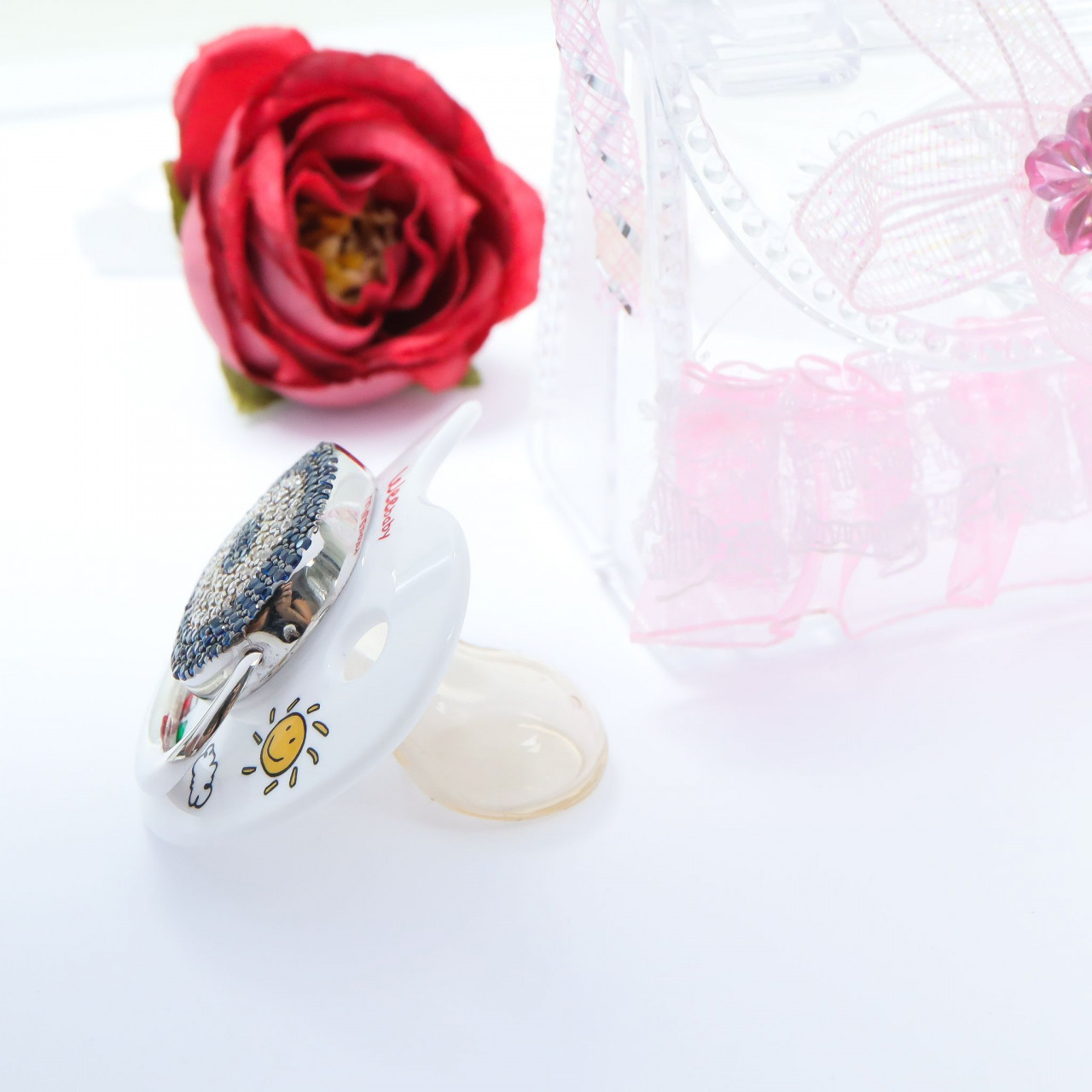 Descriere Oferiți-i micuței dumneavoastră un dar de neuitat cu Suzeta Crystal din Argint, o bijuterie delicată și elegantă, perfectă pentru momentele speciale din viața ei. Această suzetă este mai mult decât un accesoriu; este o declarație de stil și rafinament, fiind ideală pentru evenimentele de botez sau aniversare. Incrustată cu cristale albastre și albe, suzeta reflectă un design sofisticat, inspirat de simbolul ochiului de deochi, oferind protecție și eleganță în același timp. Fiecare detaliu este meticulos lucrat pentru a asigura un produs de calitate, care să fie apreciat și păstrat ca amintire prețioasă. Caracteristici principale Specificații: Suzeta din argint, ideală pentru fetițe Material: Argint de înaltă calitate Design: Incrustată cu cristale albastre și albe, în formă de ochiul de deochi Dimensiuni: Dimensiuni standard pentru suzete de bijuterie Gramaj: Variabil Personalizare: Nu sunt disponibile opțiuni de personalizare Meșteșug Fiecare suzetă este realizată cu o atenție deosebită la detalii, folosind tehnici tradiționale de prelucrare a argintului. Cristalele sunt atent selectate și montate manual, asigurându-se astfel o finisare impecabilă și o durabilitate excepțională. Purtare și stil Această suzetă din argint este perfectă pentru a fi purtată la evenimente speciale, cum ar fi botezul sau aniversările. Poate fi asortată cu alte bijuterii din argint pentru a completa un look elegant și rafinat. Idee de cadou Suzeta Crystal din Argint este un cadou ideal pentru botez sau aniversarea unui copil. Este un dar care va fi cu siguranță apreciat și păstrat ca o amintire prețioasă de-a lungul anilor. Îngrijire și întreținere Pentru a menține strălucirea și frumusețea suzetei, se recomandă curățarea regulată cu o cârpă moale și evitarea expunerii la substanțe chimice dure. Depozitați bijuteria într-un loc uscat și ferit de lumină directă. De ce să alegi această bijuterie Alege Suzeta Crystal din Argint pentru a oferi un dar de neuitat, care combină eleganța cu simbolismul protector al ochiului de deochi. Este o bijuterie de calitate, care va rămâne o amintire prețioasă pentru cei dragi. * Prețul standard afișat pe site este prețul de bază al bijuteriei, fără alte opțiuni extra, opțiuni ce se pot selecta din pagina de produs (doar unde este cazul) și generează cost suplimentar. * Personalizarea este posibilă doar la piesele ce permit acest lucru, iar prețul standard selectabil în pagina de produs face referire la personalizare simplă cu text sau simbol. Pentru alte opțiuni de personalizare mai complexă, prețul va fi comunicat telefonic. * Fotografiile, gramajele și dimensiunile sunt prezentate cu titlu orientativ, iar în realitate culorile pot fi ușor diferite, iar specificațiile privind mărimea și greutatea pot varia ușor în funcție de tipul de finisaj aplicat. * Din dorința de a surprinde cât mai bine detaliile bijuteriei, este posibil ca în fotografie unele piese să pară mai mari decât în realitate. Citește cu atenție specificațiile din descriere.