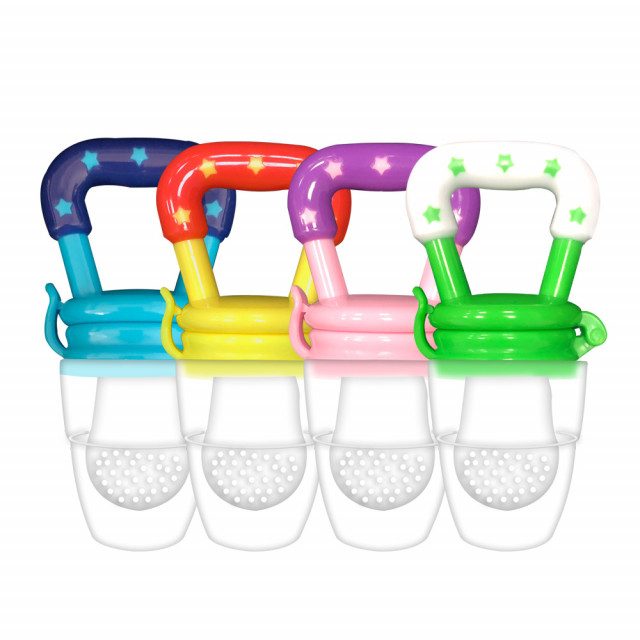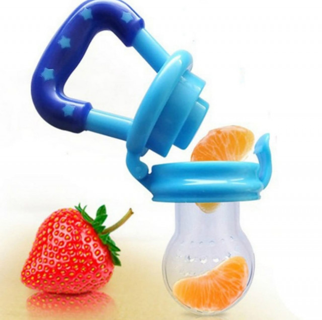 Suzeta pentru fructe este un produs foarte util din momentul in care bebelusului incep sa ii iasa primii dinti, aceasta ajutand la masajul gingival si reducand durerea de la aparitia dintilor, datorita siliconului alimentar din care este confectionata tetina. In tetina pot fi introduse fructe, bebelusul dumneavoastra indragostindu-se astfel imediat de acest produs. Suzeta este prevazuta cu un capac, putand fi astfel depozitata oriunde. Manerul are o dimensiune potrivita astfel incat bebelusul poate tine suzeta in manuta pe parcursul utilizarii. Produsul este disponibil pentru diverse varste: 3-6, 6-9 si peste 9 luni Culoare: galben, roz, verde sau albastru. Sterilizati produsul inainte de folosire, feriti produsul de apa fierbinte, cuptorul cu microunde, caldura excesiva sau masina de spalat vase.