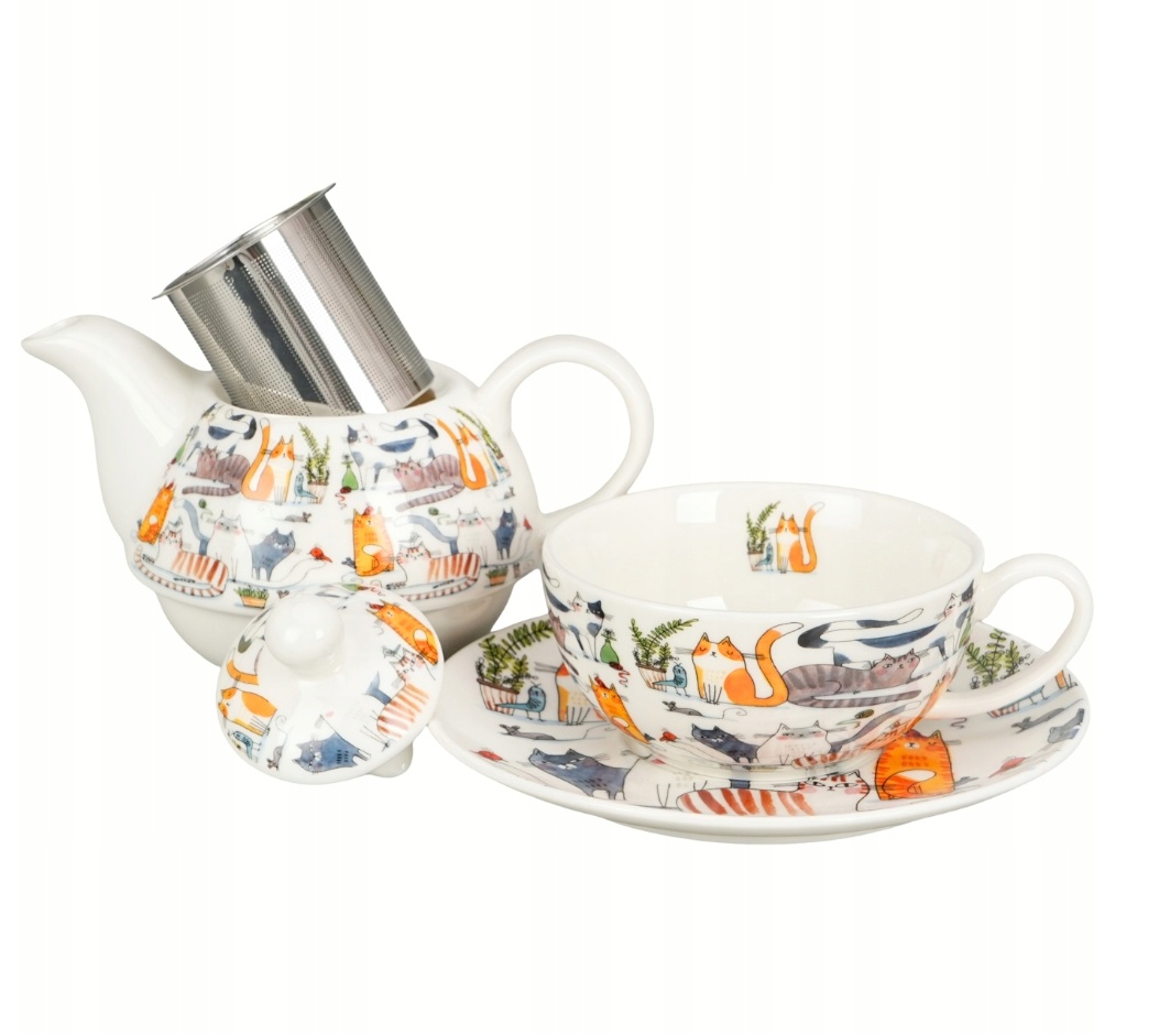 Tea for One” e genul de set care îți face pauza mai simplă: ai ceainicul, ceașca și infuzorul la un loc. Motivele cu pisici și detaliile colorate îl fac perfect pentru un colț de birou sau o masă de mic dejun mai relaxată. Ce primești (în pachet) Ceainic cu capac (porțelan) Ceașcă (porțelan) Farfurioară (porțelan) Infuzor din oțel inoxidabil (tip coș) Cutie cadou (giftbox) De ce îți va plăcea Set complet „tea for one”: se așază compact, piesele se potrivesc între ele. Infuzor tip coș: frunzele au spațiu, iar lichidul rămâne curat, fără resturi. Capac inclus: păstrează căldura în timpul infuzării și arată elegant pe masă. Porțelan New Bone China: aspect fin, crem-alb, cu luciu discret. Design „Lazy Cats”: model jucăuș, ușor de făcut cadou. Cum îl foloseștiȘ Pune infuzorul de inox in ceainic Pune ceaiul în infuzorul din inox (în ceainic). Toarnă apă fierbinte și pune capacul. Lasă la infuzat cât îți place (în funcție de tipul de ceai). Scoate infuzorul și așază setul pe farfurioară. (daca ai ceai de plante, fructe sau rooibos acest pas nu e necesar) Toarnă în ceașcă și bucură-te de o porție completă. Îngrijire și întreținere Porțelanul: compatibil cu mașina de spălat vase și cuptorul cu microunde (conform producătorului). Recomandare practică: nu introduce infuzorul metalic în microunde. Detaliu de stilE genul de set care arată bine „în vitrină”, dar e făcut pentru folosit zilnic: un mic ritual complet, fără să ocupi mult spațiu.