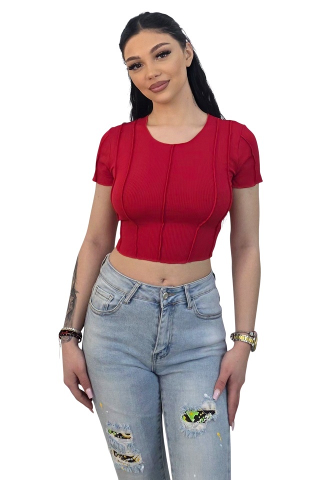 Piesa care echilibreaza orice outfit. Alegere rapida pentru un look complet Topul ELOWEN este realizat pe o constructie evidentiata prin nervuri verticale si cusaturi de contur, care delimiteaza zonele de croiala si contribuie la definirea formei bustului si a taliei. Structura materialului permite mentinerea liniilor frontale fara deformare in timpul purtarii. Croiala este de tip crop, pozitionata deasupra taliei, ceea ce permite combinarea cu piese cu talie inalta. Decolteul rotund si manecile scurte ofera o linie simpla si echilibrata, usor de integrat in tinute zilnice sau combinatii mai structurate. Produsul nu include sistem de inchidere, fiind conceput pentru imbracare directa. Materialul elastic urmareste forma corpului si sustine structura nervurilor pe toata durata utilizarii. Caracteristici bluza: - croiala crop pozitionata deasupra taliei - cusaturi verticale pentru definire structura bust si alungire talie - decolteu rotund linie simpla fara ajustari - maneci scurte croiala directa fara mansete - compozitie material: 90% poliester, 10% elastan; Eticheta produsului conține informații esențiale referitoare la întreținerea și spălarea corectă a articolelor vestimentare. Imaginile Fashionforyou au caracter informativ, iar nuanta, tonul si intensitatea culorii pot varia in functie de monitor/ecran telefon.