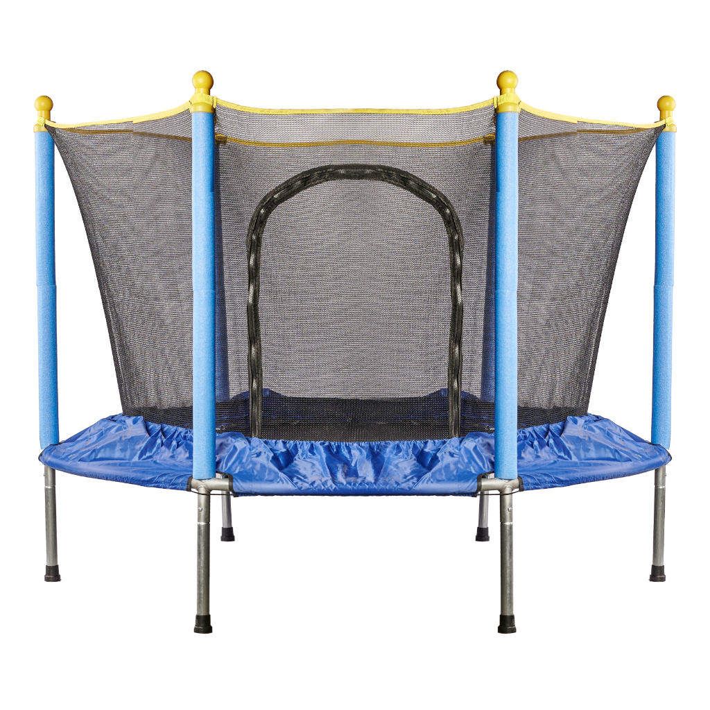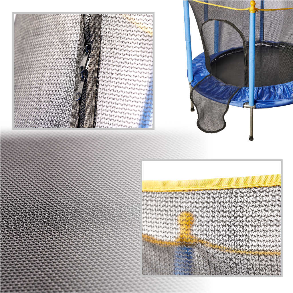 Trambulina de gradina pentru copii. Include elemente de siguranta pentru sarituri: o plasa de siguranta, un capac de protectie pentru arc, precum si tampoane si huse de spuma pentru stalpi. Dotat cu intrare cu fermoar. Covorasul flexibil (trambulina) asigura o saritura excelenta. Capacitatea maxima de incarcare este de 80 de kilograme. Specificatii tehnice: varsta utilizator: 6+ sarcina maxima: 80 kg tip net: intern Dimensiuni: diametru total: 140 cm inaltime de la sol pana la suprafat
