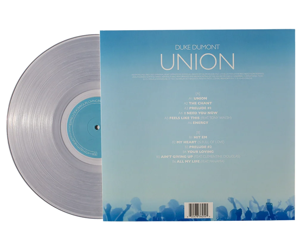 Side A:Duke Dumont - Union - 1:28Duke Dumont - The Chant - 3:10Duke Dumont - Prelude #1 - 0:13Duke Dumont - I Need You Now - 3:46Duke Dumont & Tony Walsh - Feels Like This - 4:09Duke Dumont - Energy - 2:20Side B: Duke Dumont - Hit Em - 2:56Duke Dumont - My Heart (Is Full Of Love) - 3:11Duke Dumont - Prelude #2 - 0:28Duke Dumont - Your Loving - 3:24Duke Dumont & Clementine Douglas - Aint Giving Up - 3:11Duke Dumont & Panama - All My Life - 3:25