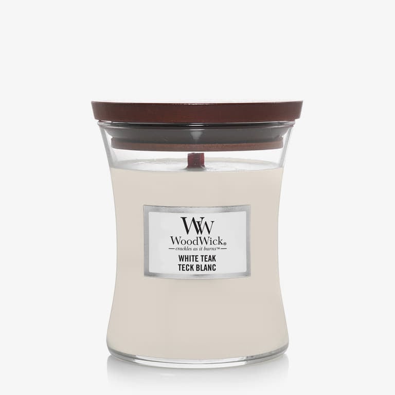 WoodWick Medium Hourglass Candle - White Teak pentru 126 lei. Cod produs: 33147, material: Sticlă